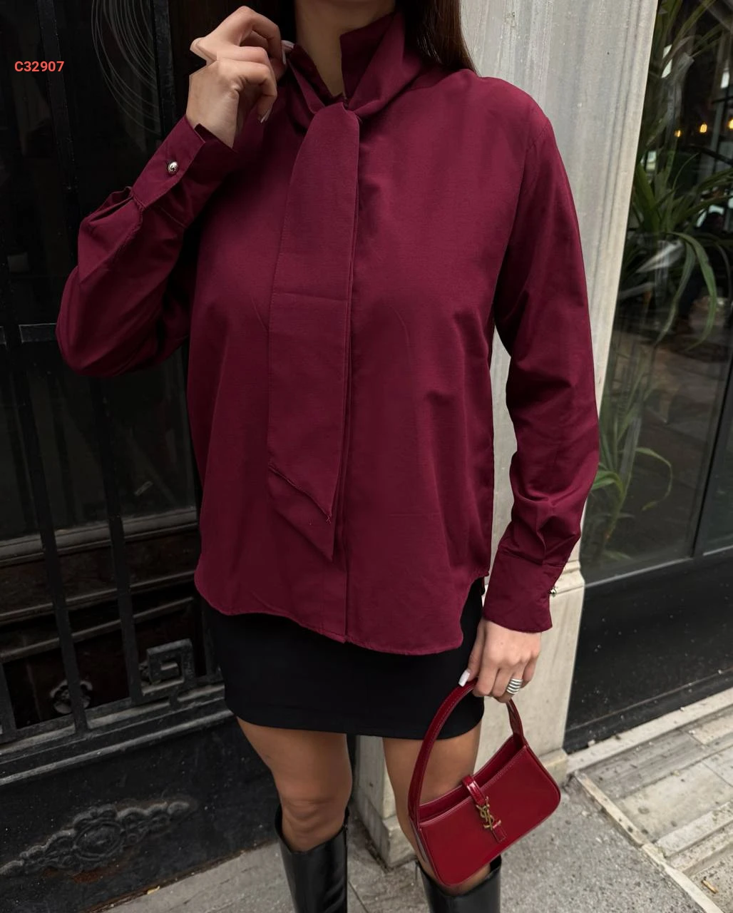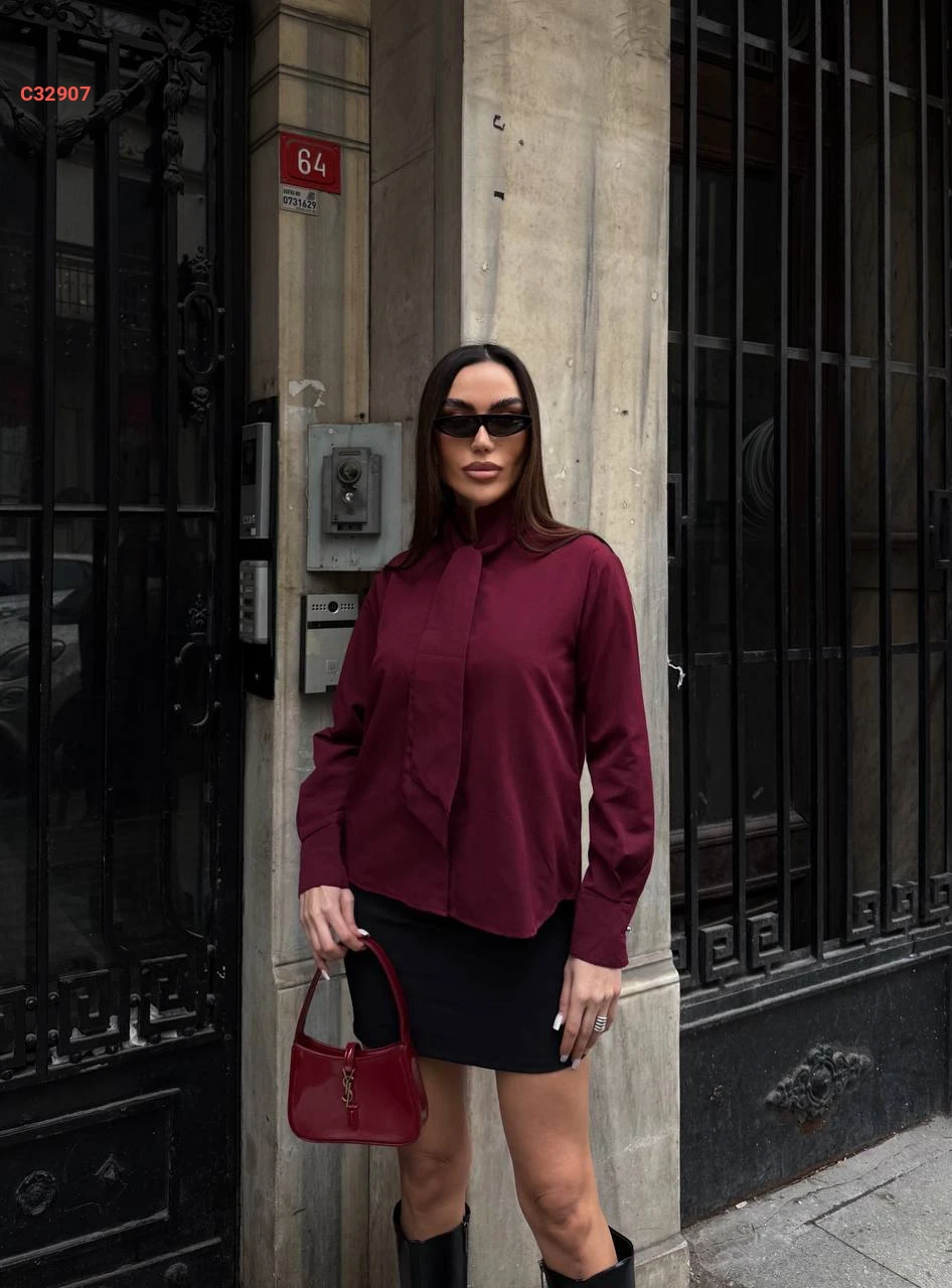 قميص كم طويل مع فولار