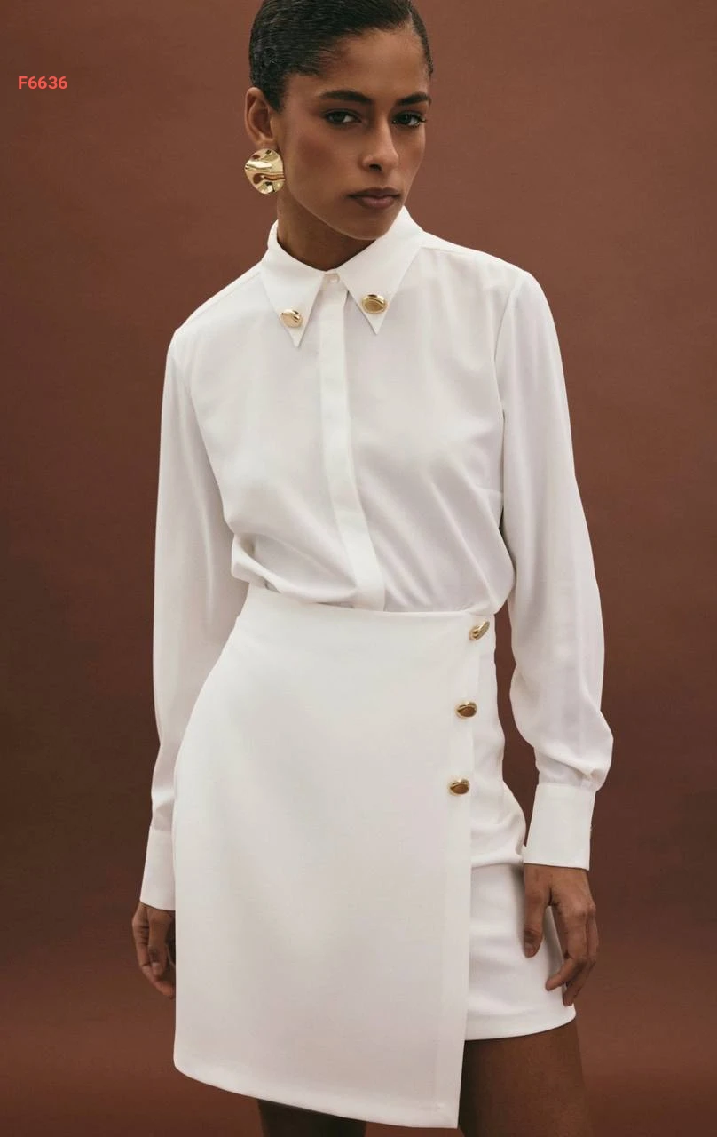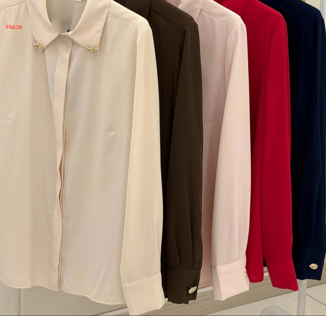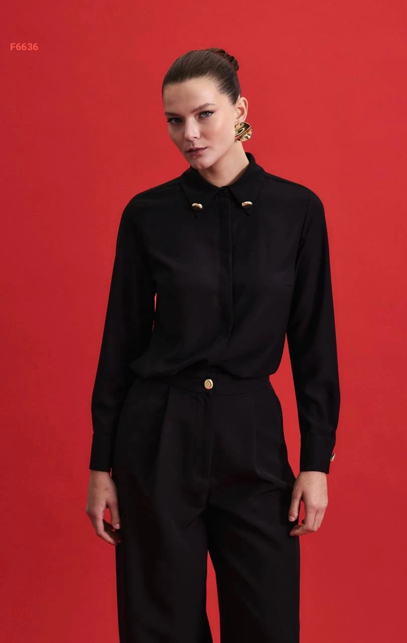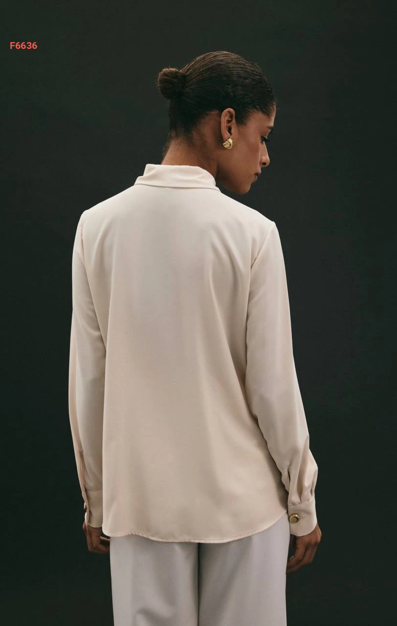 قميص كم طويل مع أزرار عالياقة