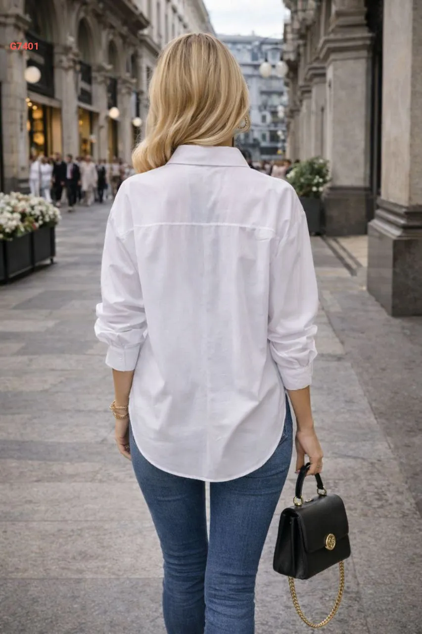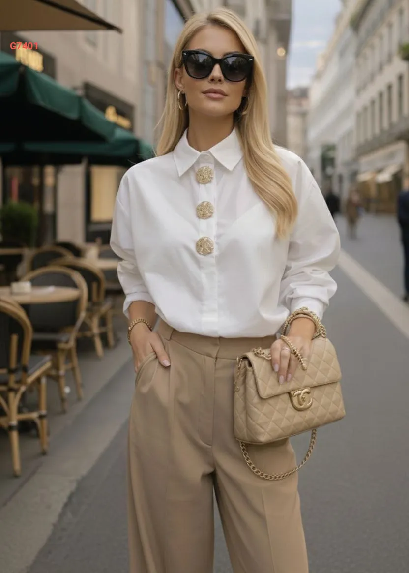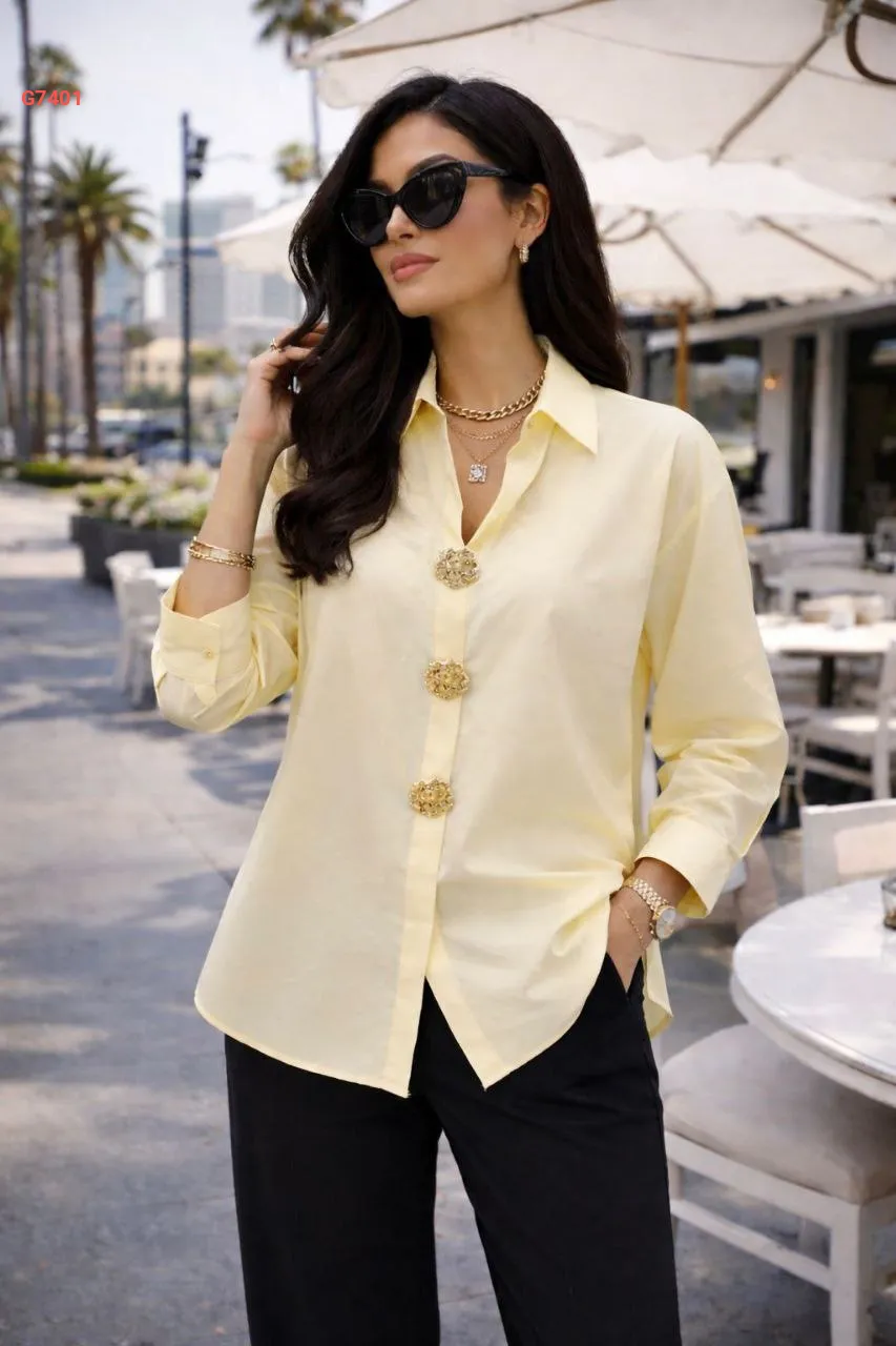 قميص كم طويل بأزرار دهبي
