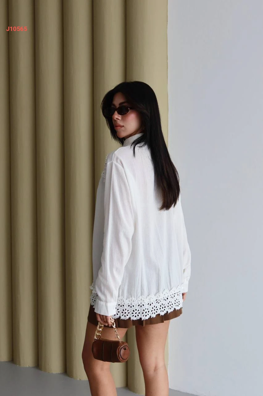 قميص كم طويل بتفاصيل مفرغة