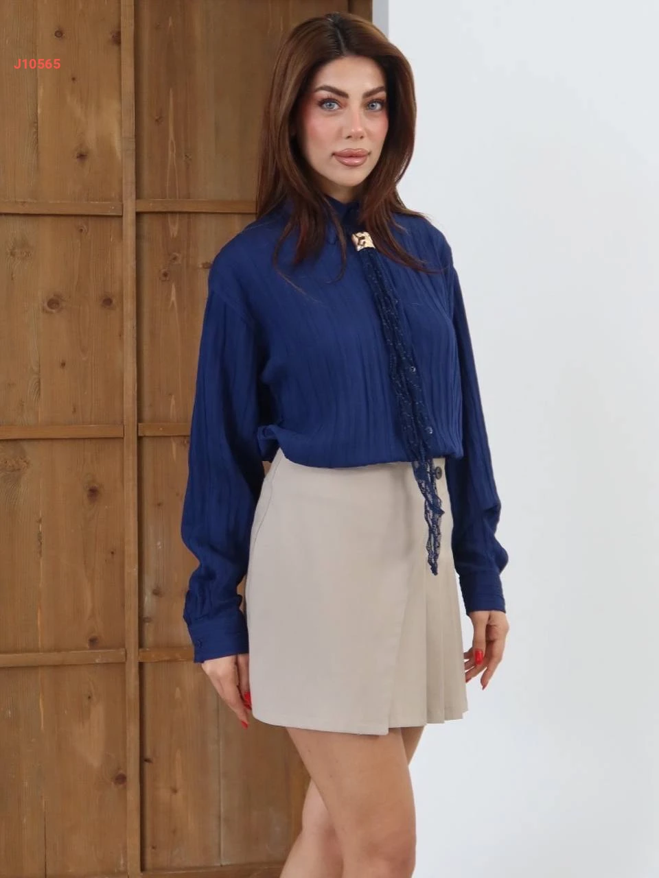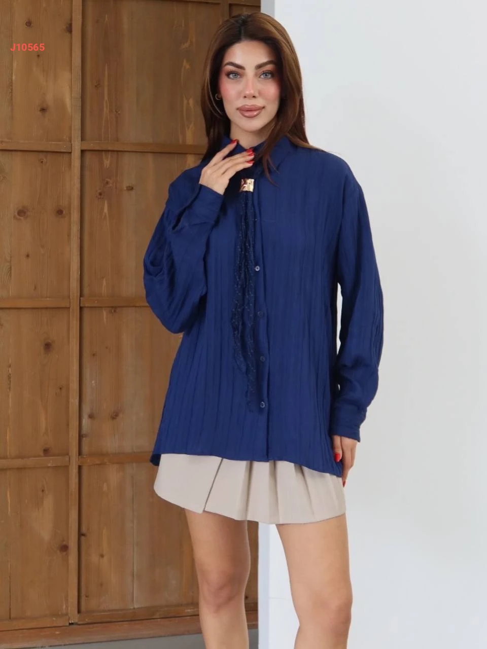 قميص كم طويل مع فولار دانتيل