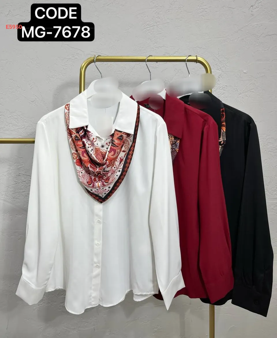 قميص كم طويل مع فولار