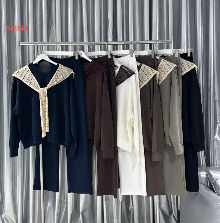 طقم بنطال سبور كم طويل مع فولار