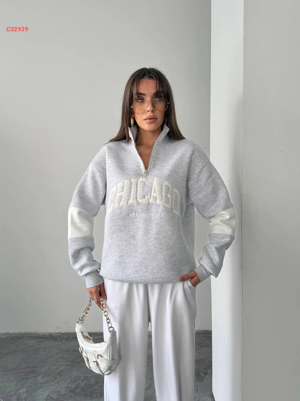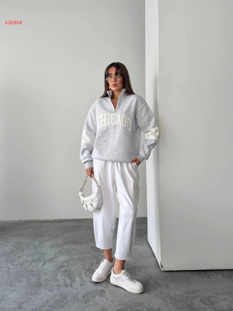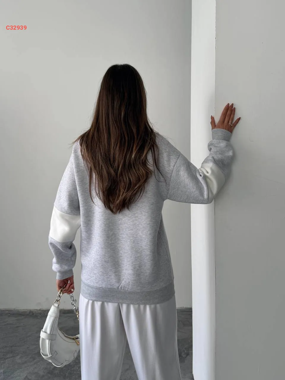 Compak penye 3 iplik içi şardonluAplike nakışlı kol detaylı sweatSeri 6 lı SS MM LL