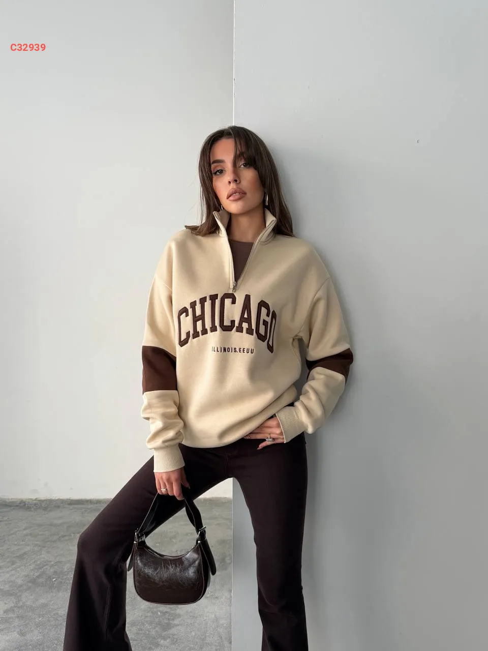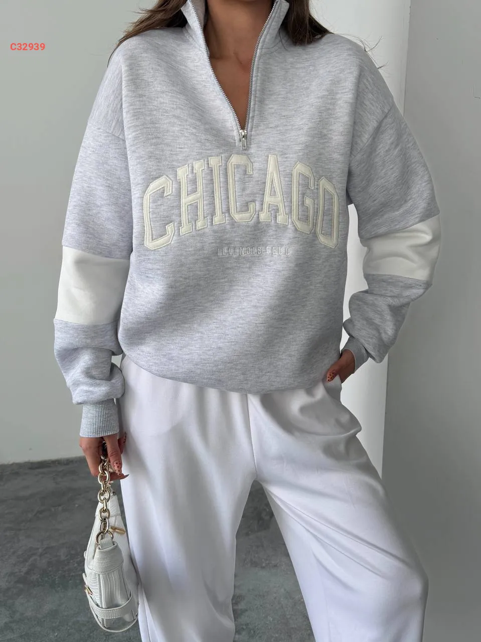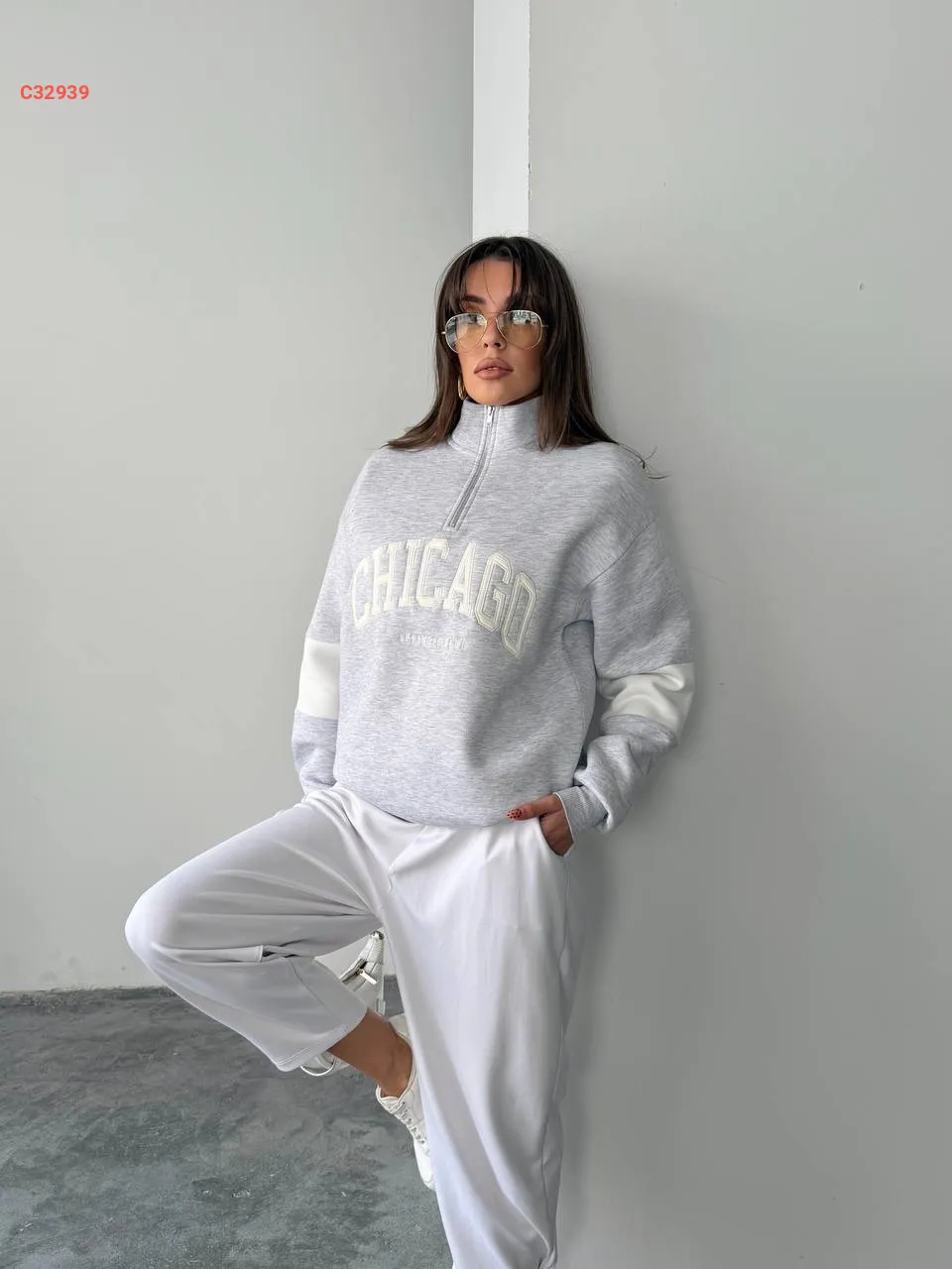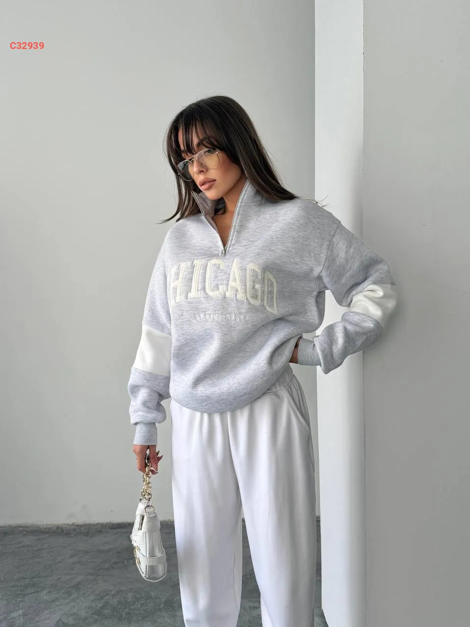 Compak penye 3 iplik içi şardonluAplike nakışlı kol detaylı sweatSeri 6 lı SS MM LL
