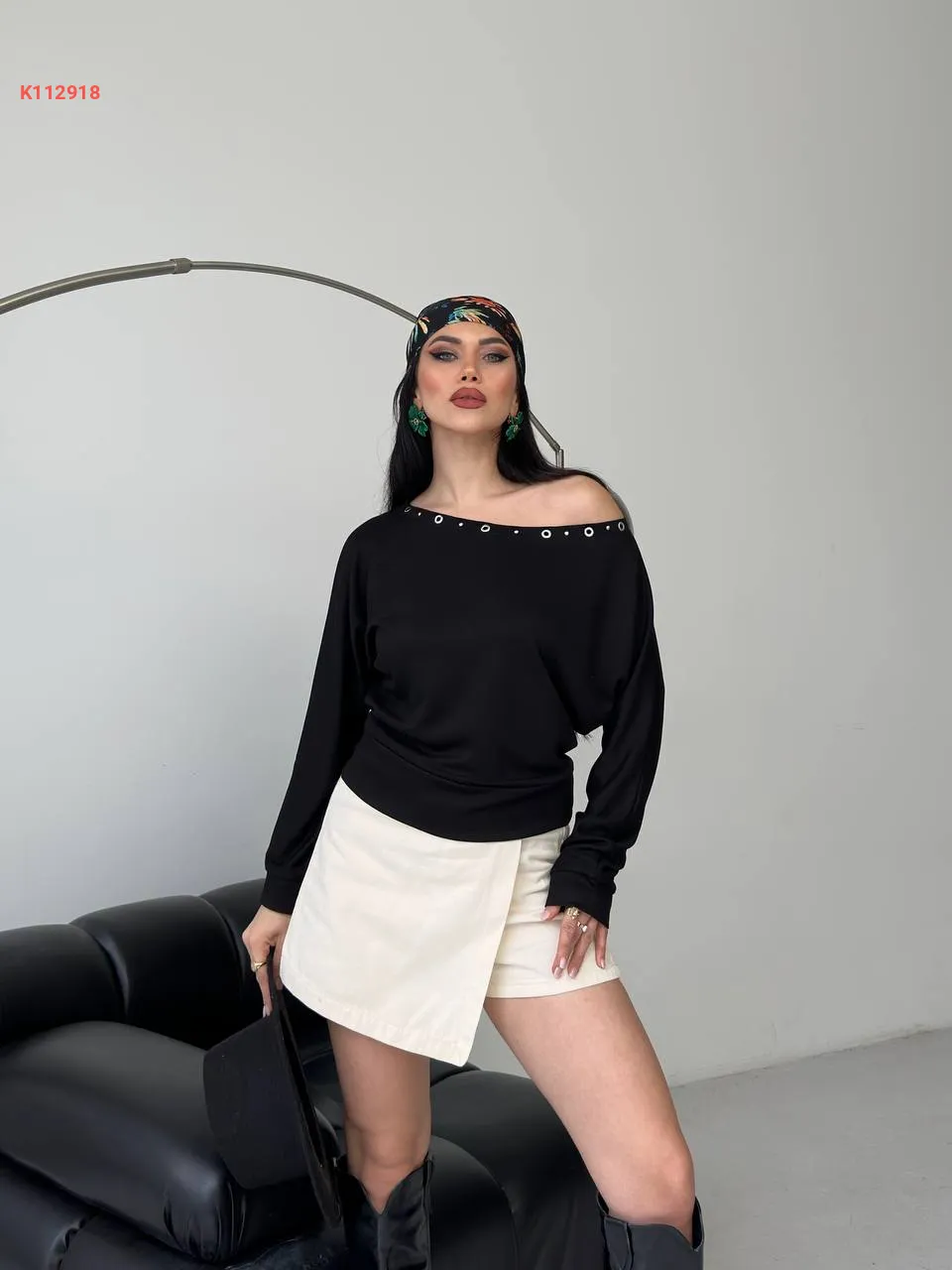 كنزة كم طويل بكتف منسدل