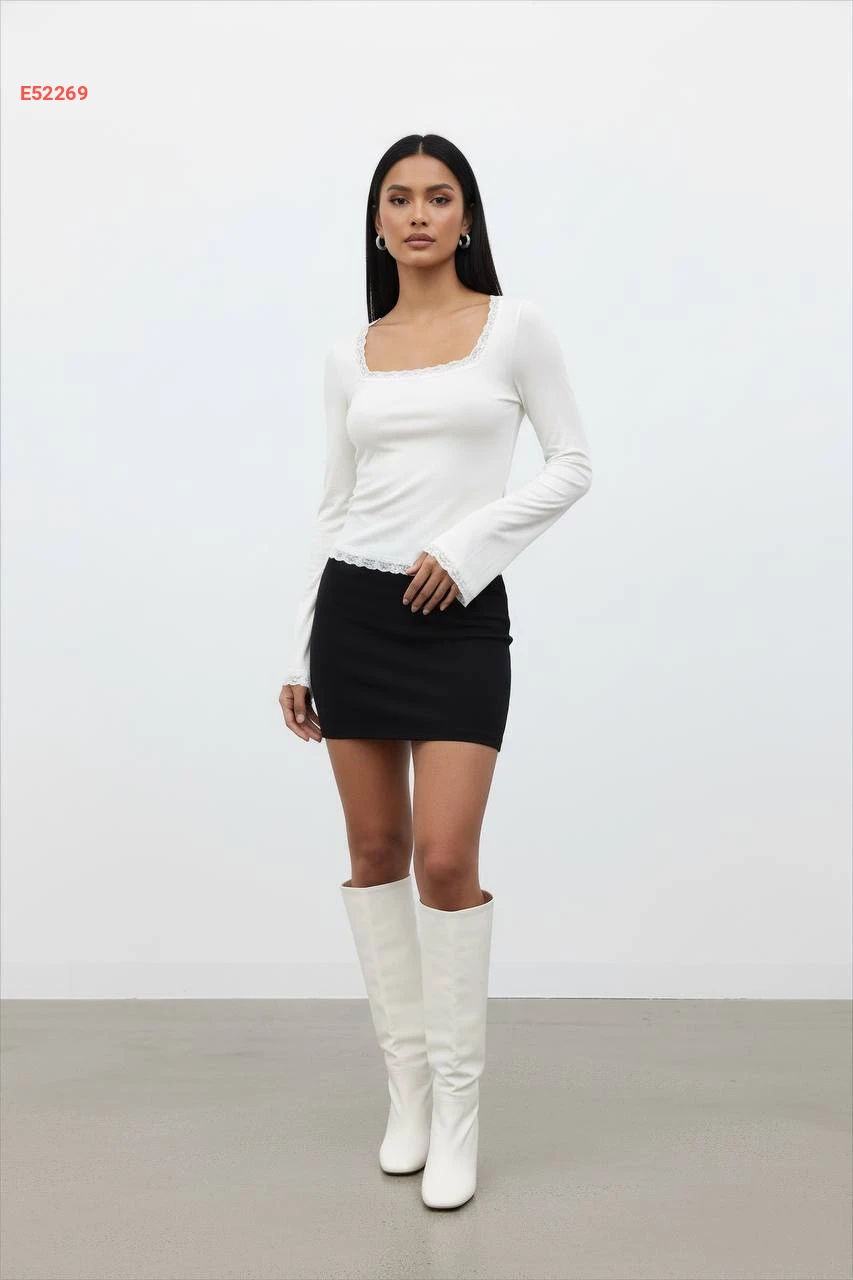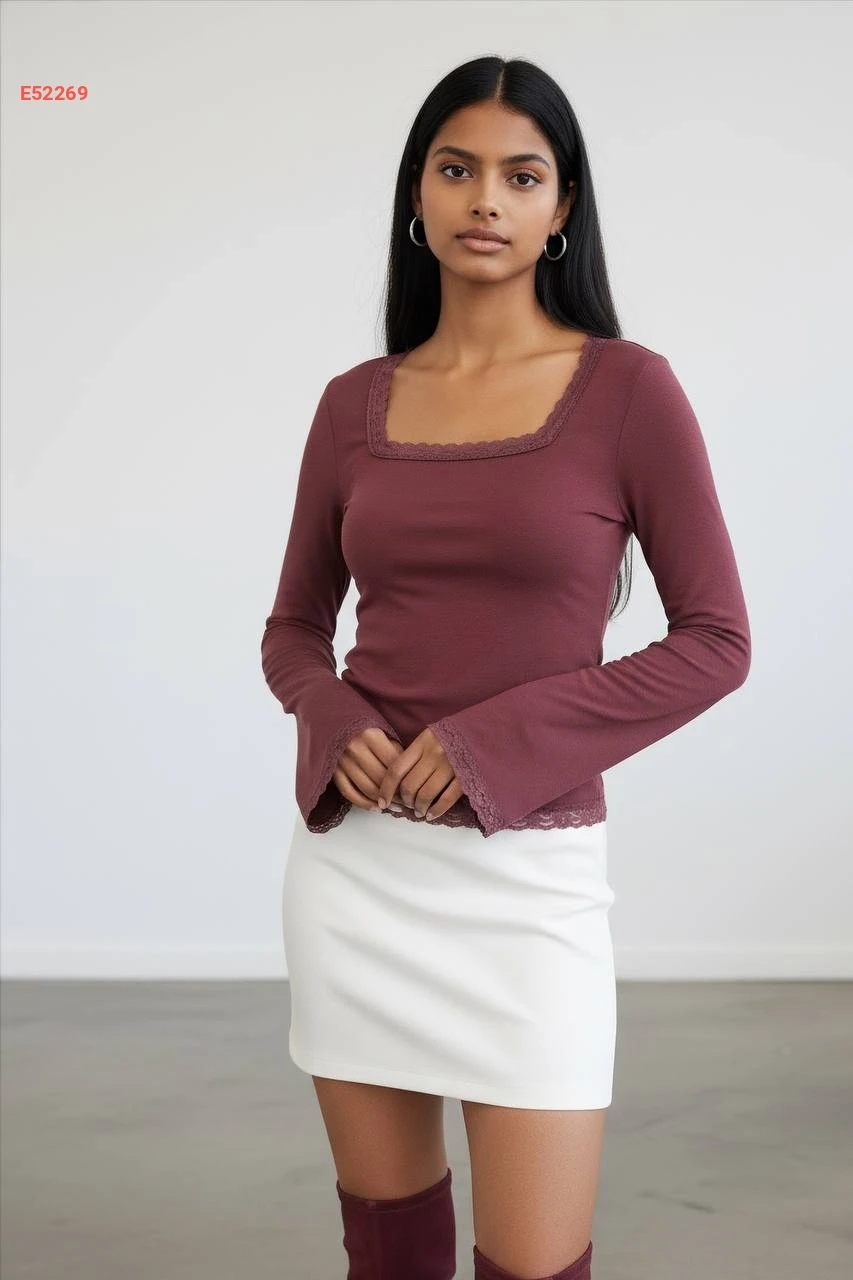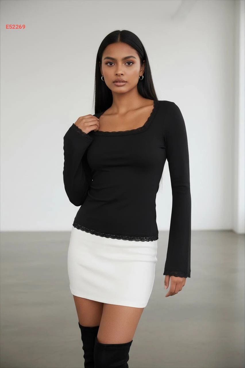 كنزة كم طويل مع دانتيل