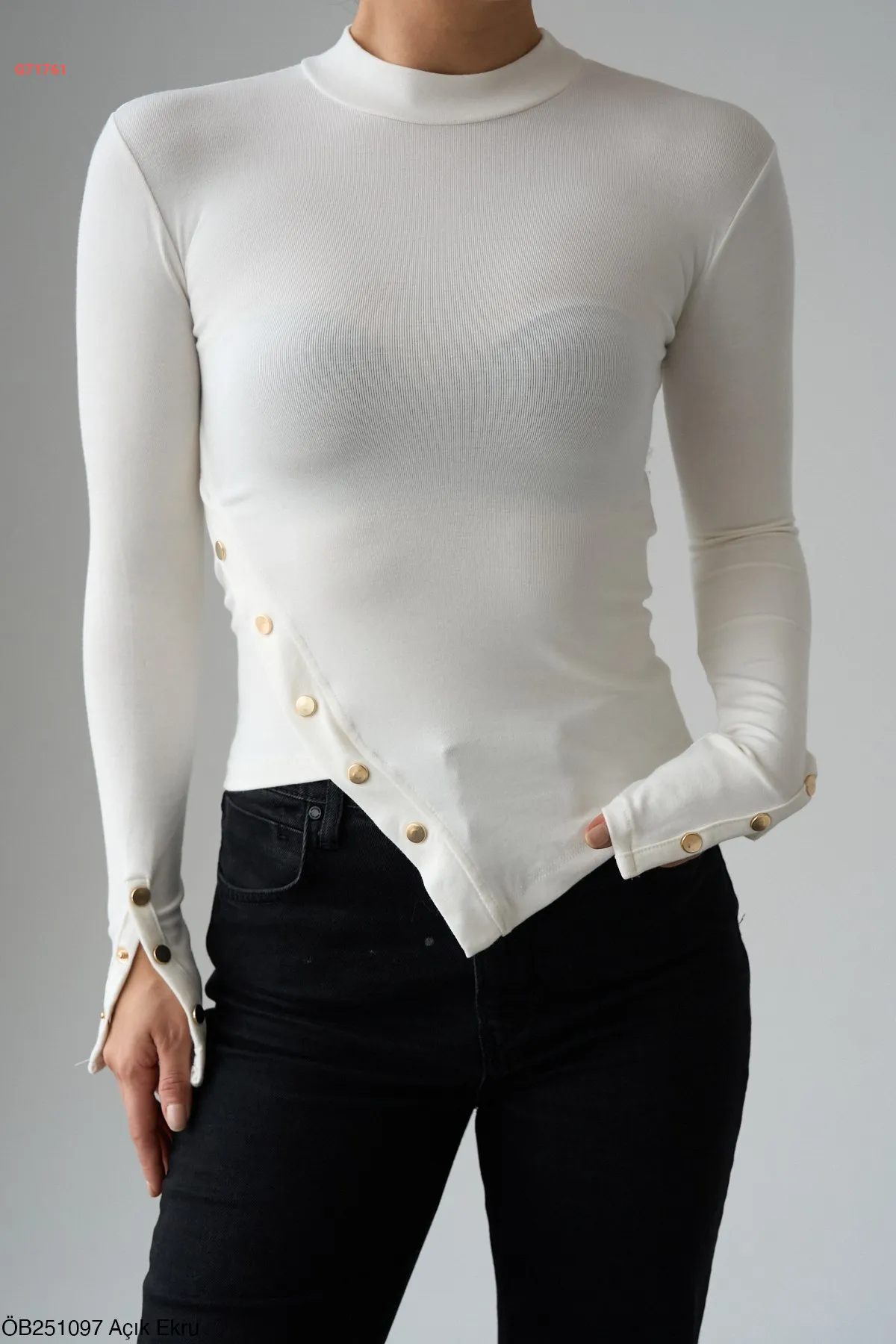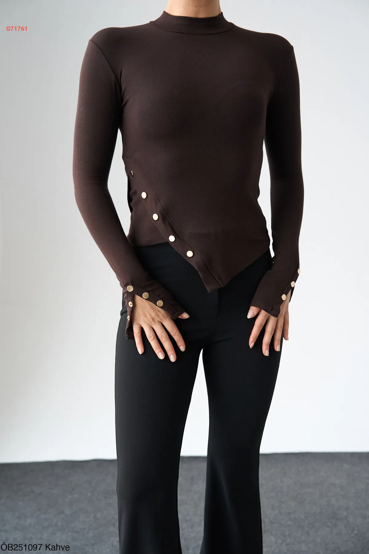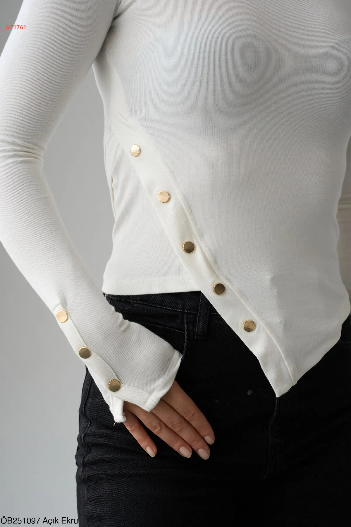 كنزة كم طويل بدي بأزرار كبس