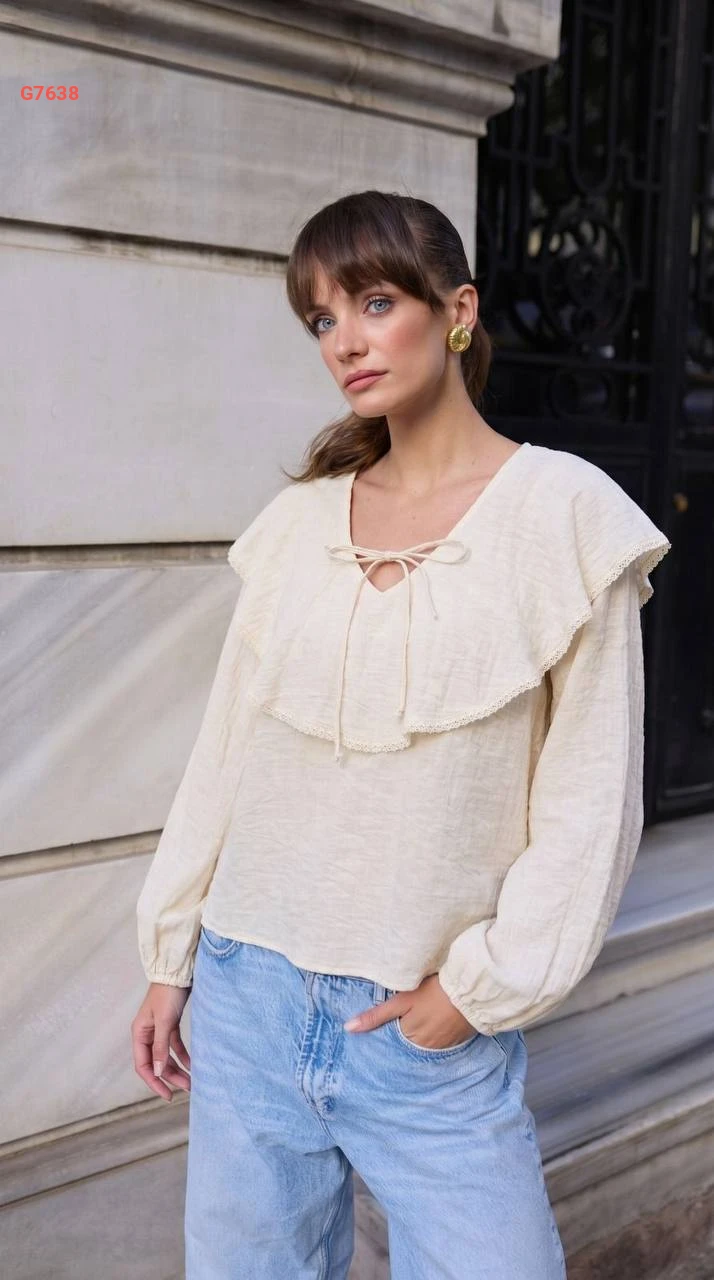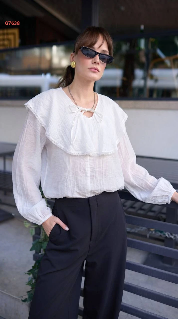 بلوزة كم طويل بتفاصيل كشكش وربطة