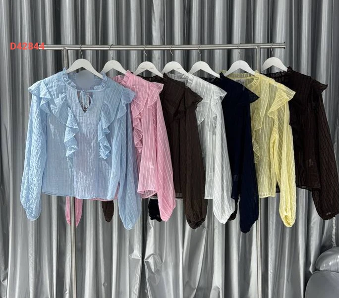بلوزة كم طويل بتفاصيل كشكش