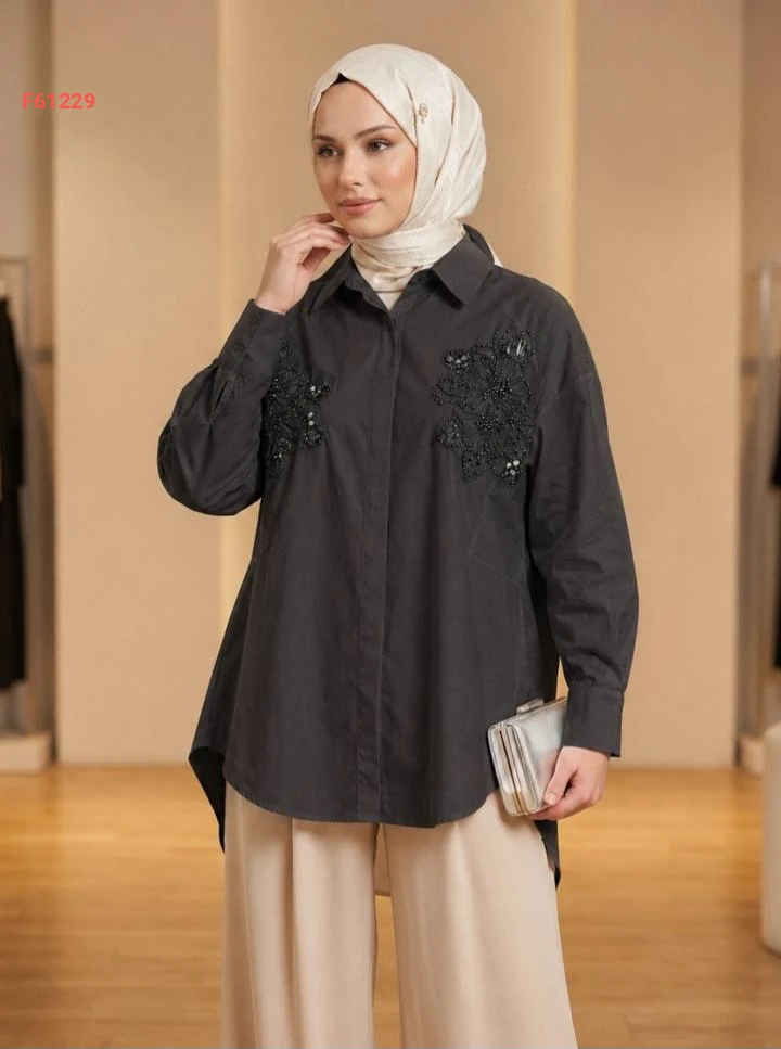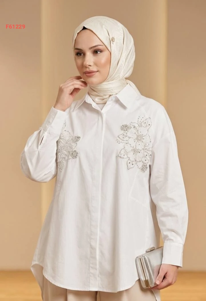 قميص كم طويل مطرز
