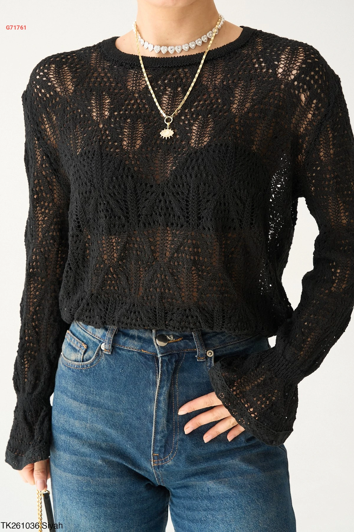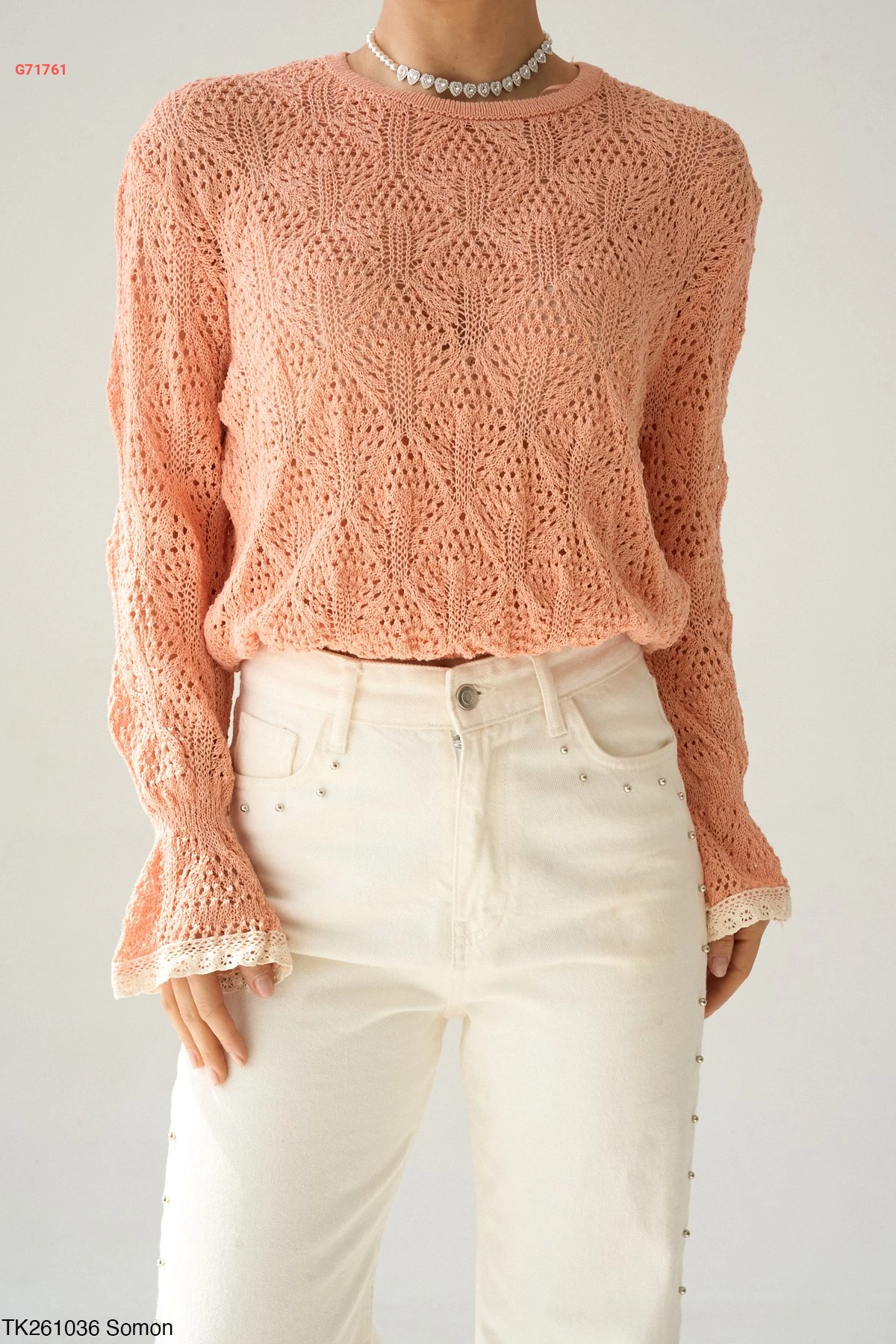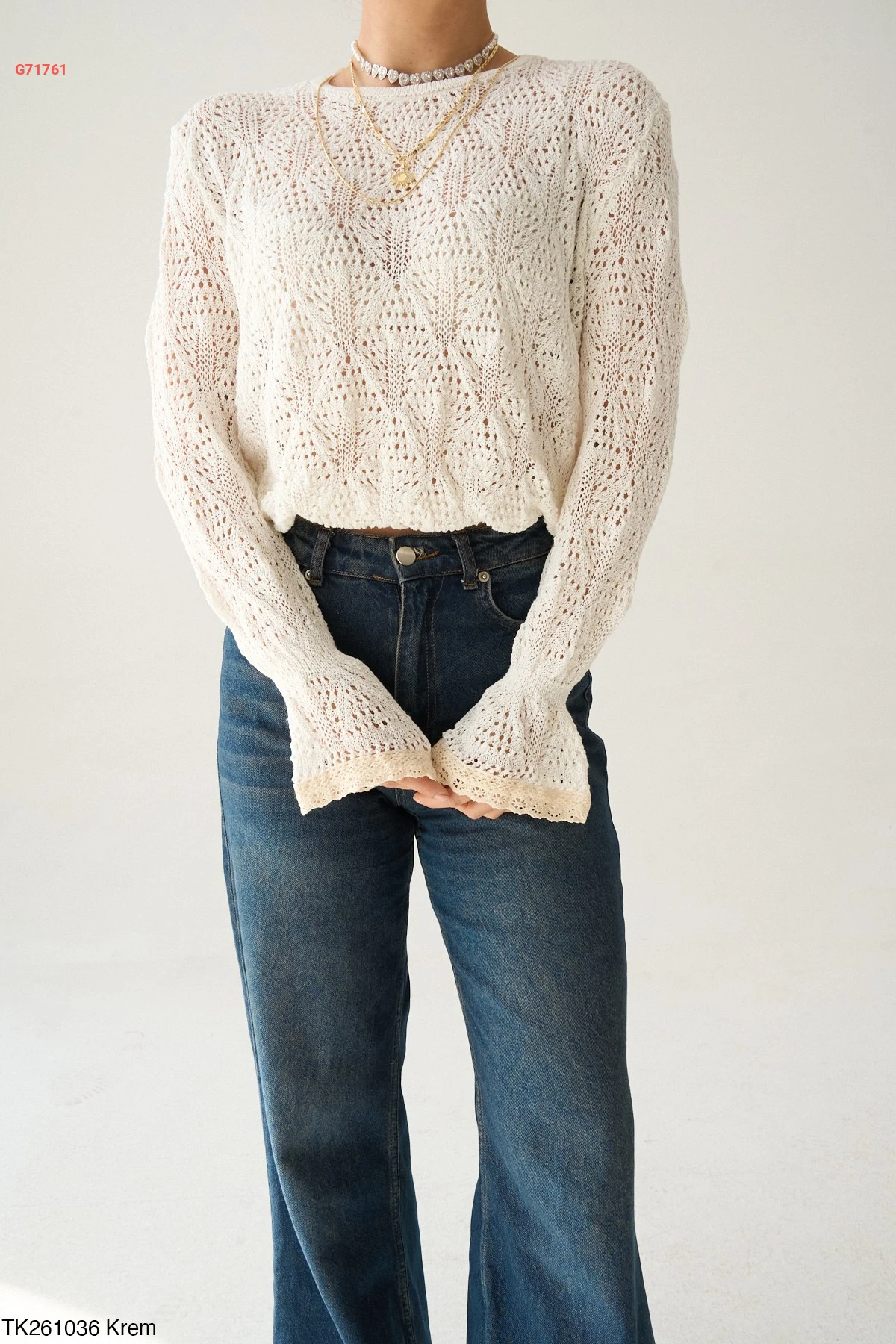 كنزة كم طويل مفرغة