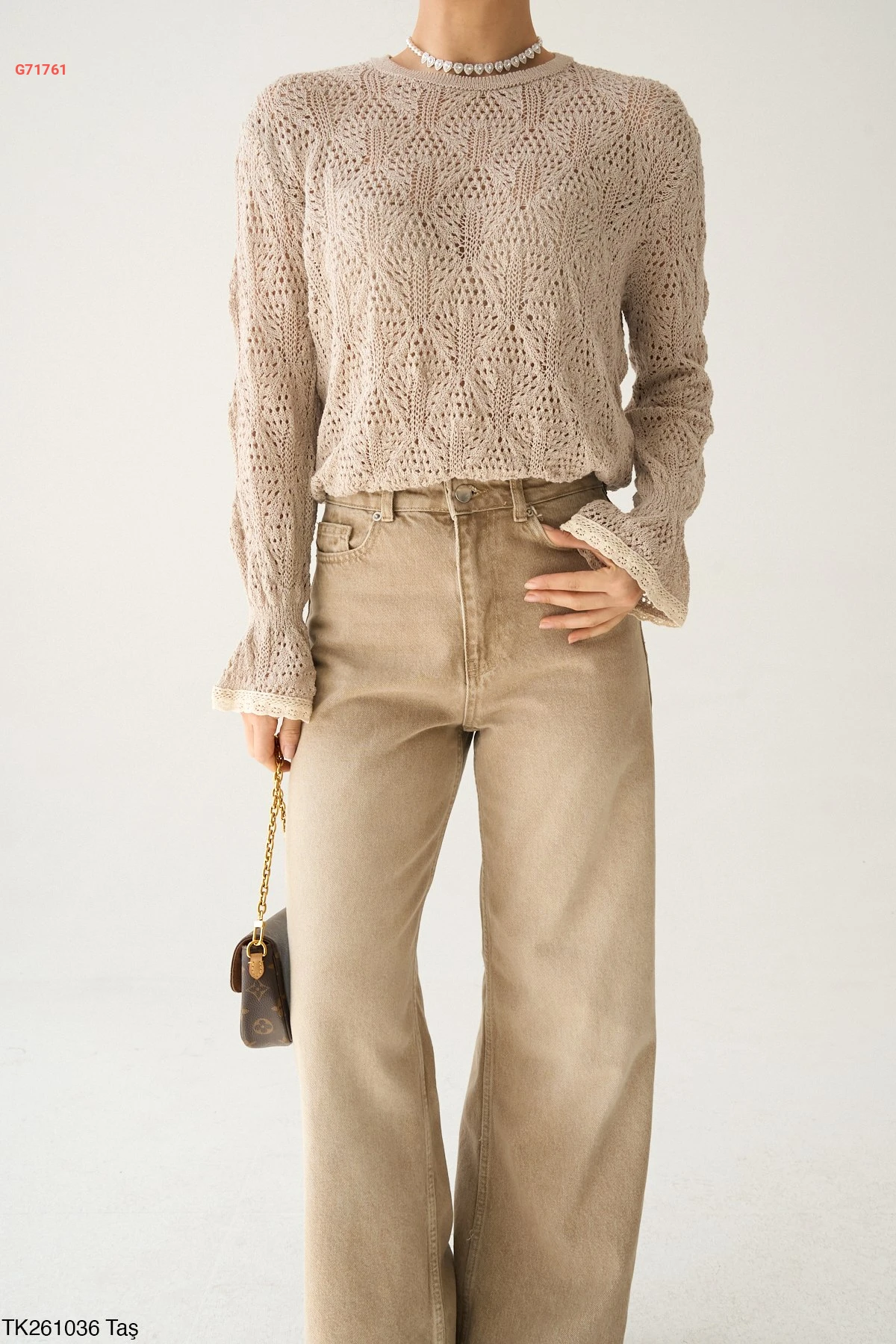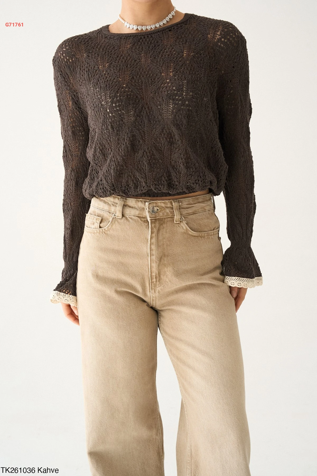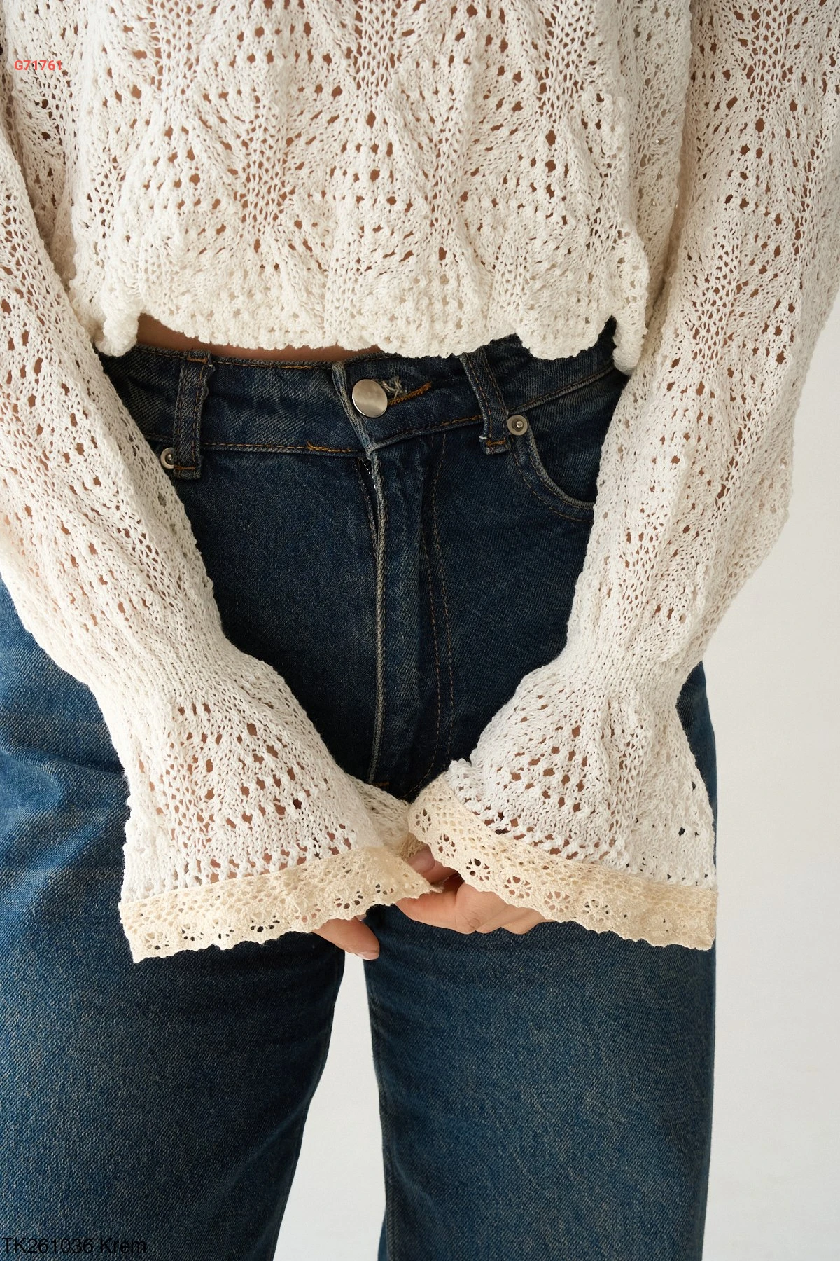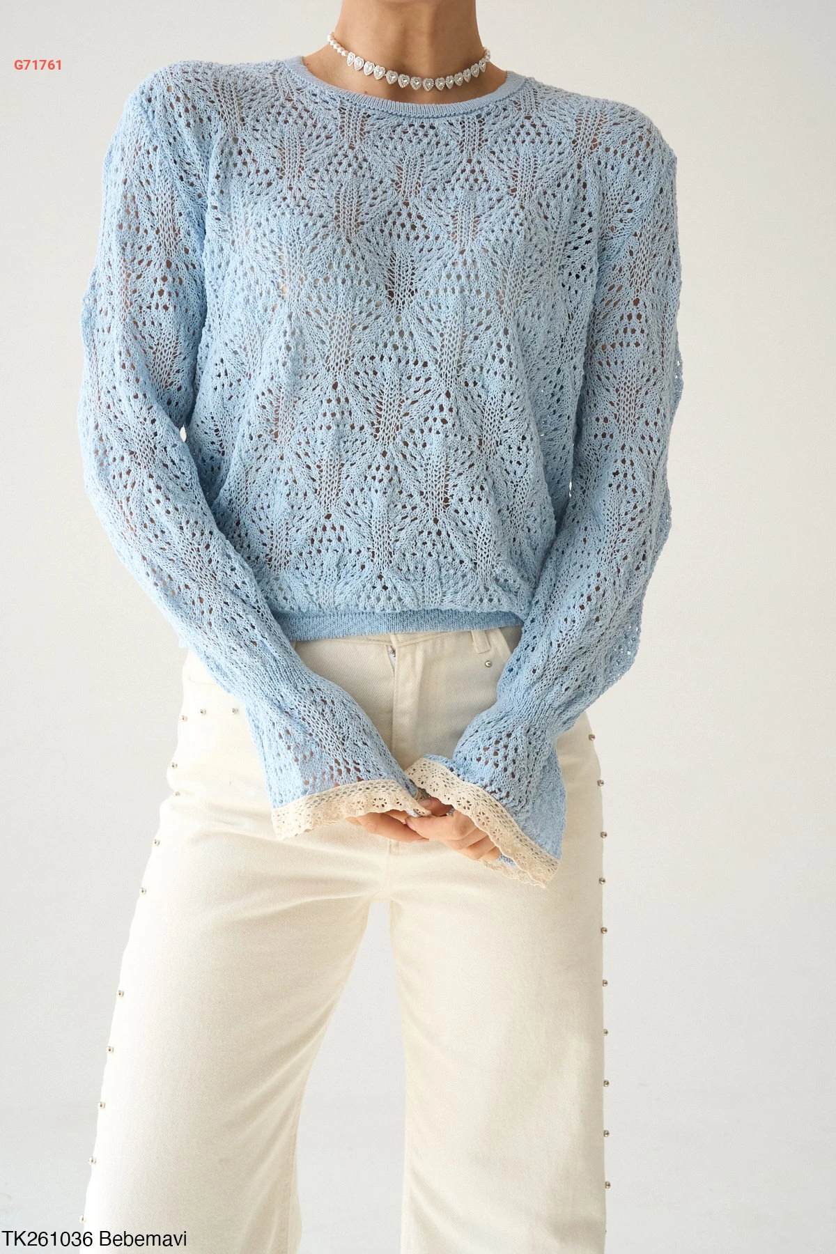 كنزة كم طويل مفرغة