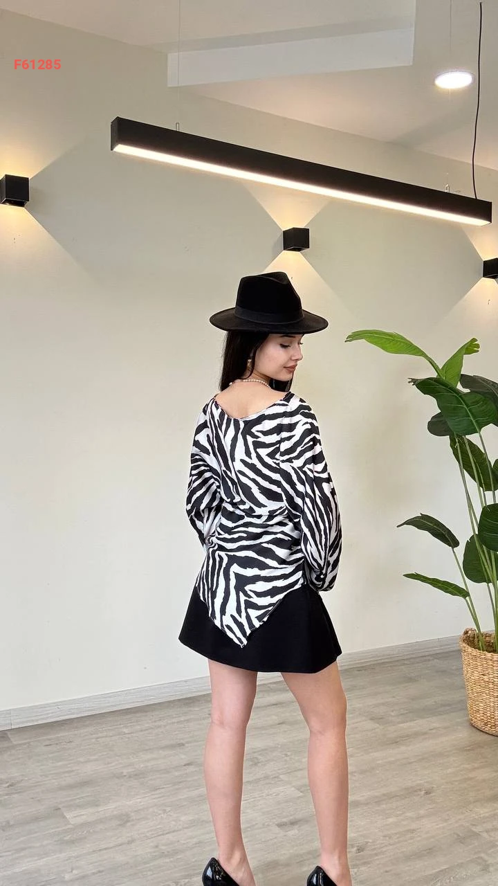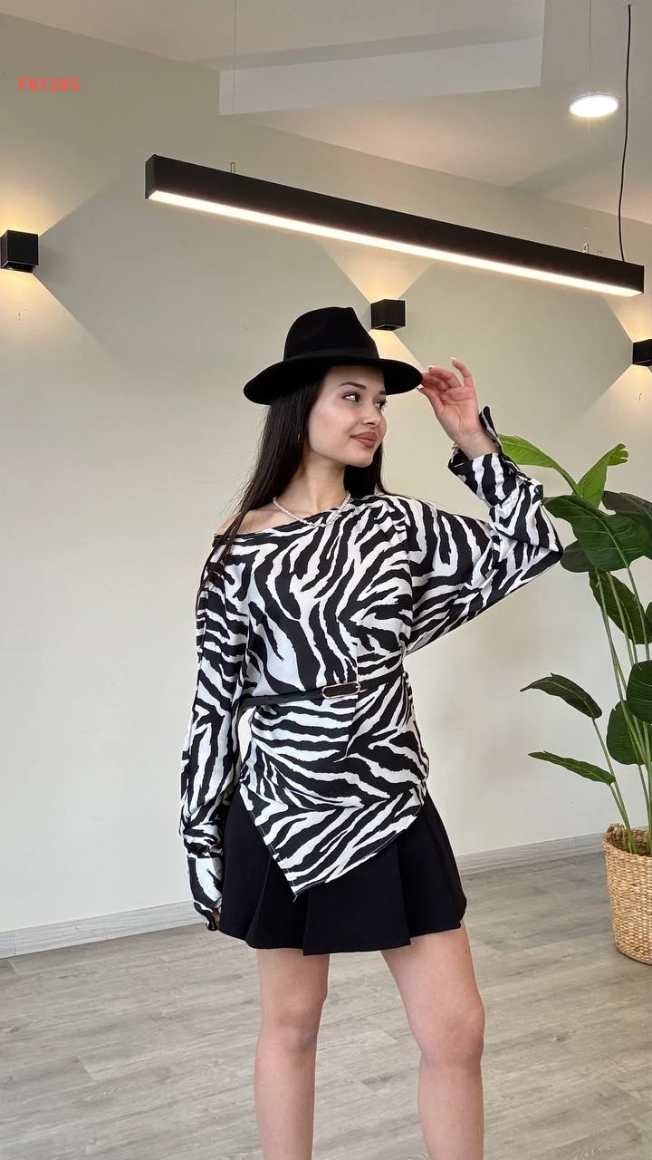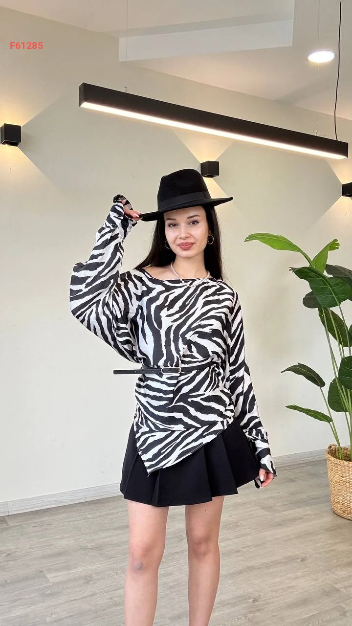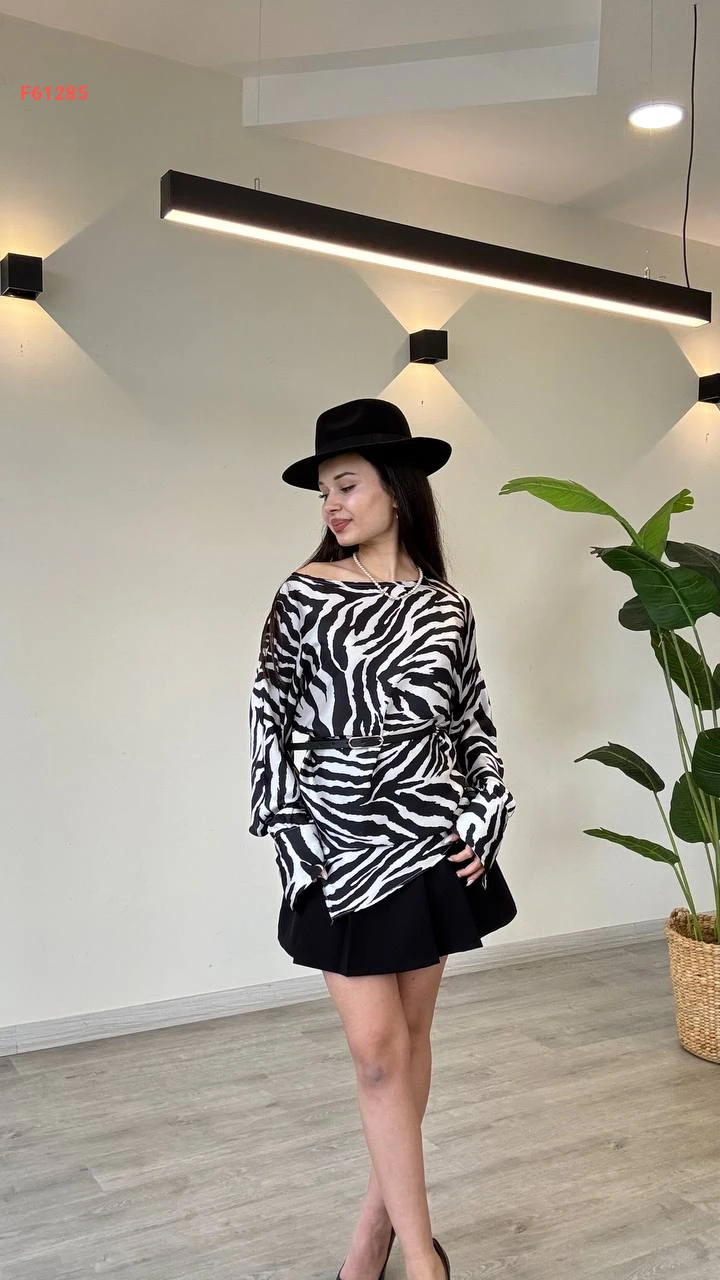 بلوزة كم طويل منقوشة لونين