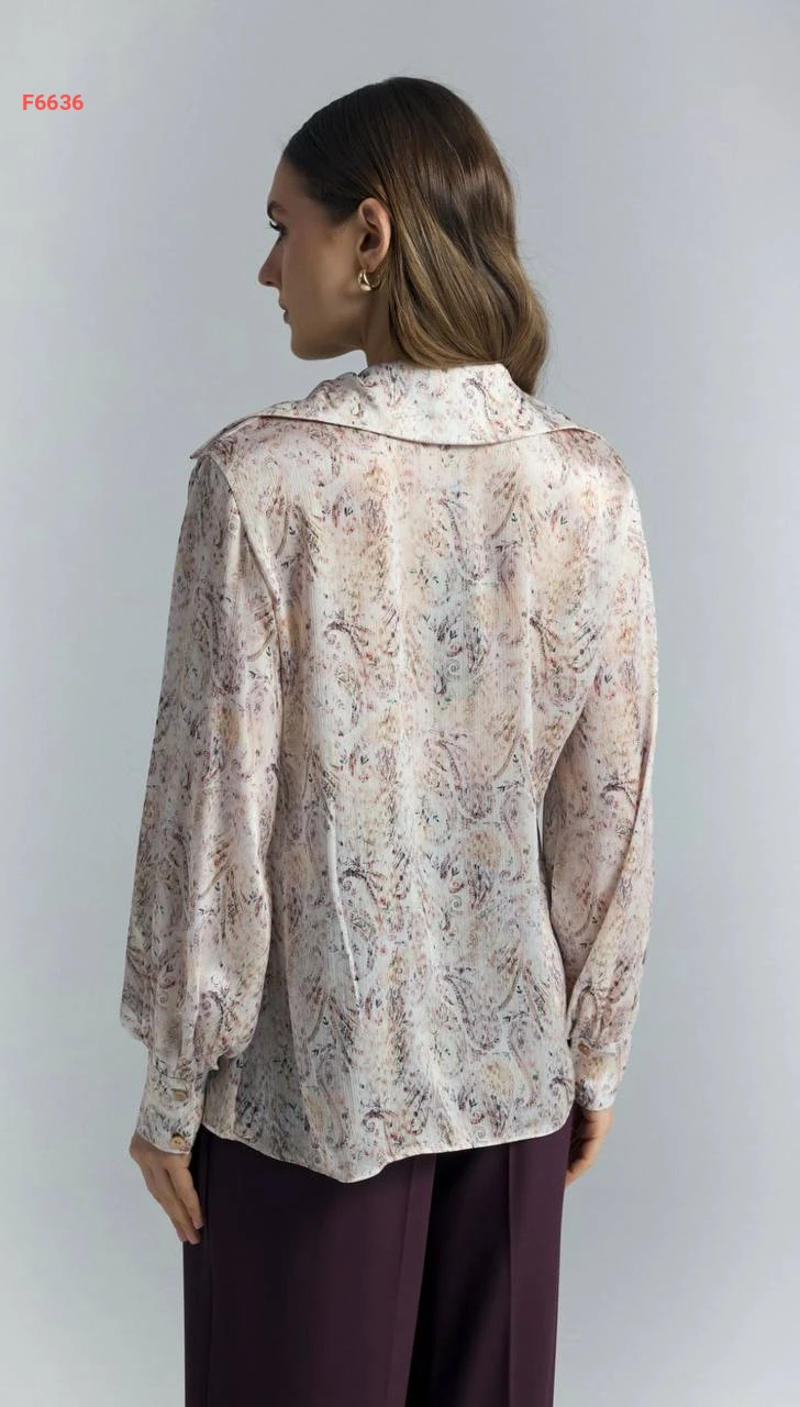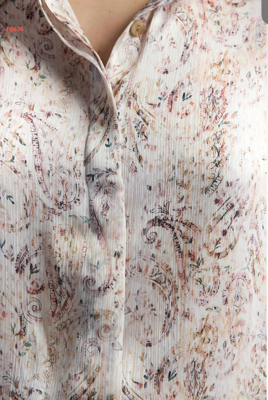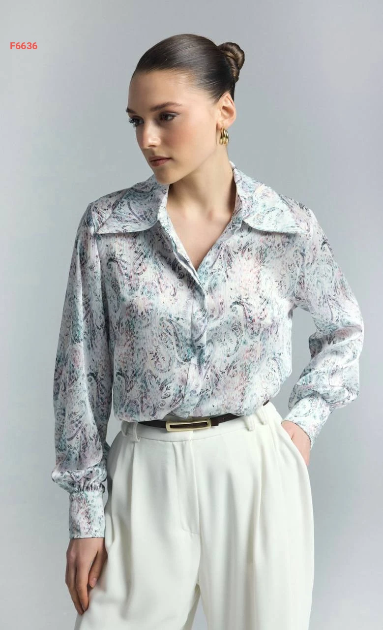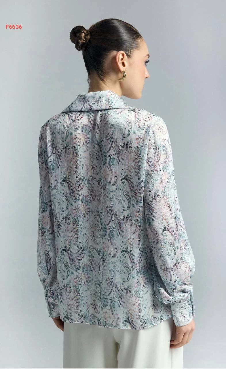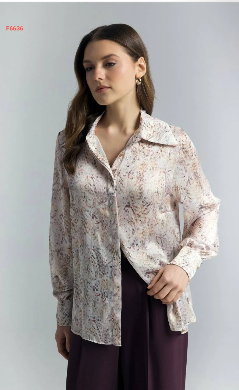 قميص كم طويل منقوش