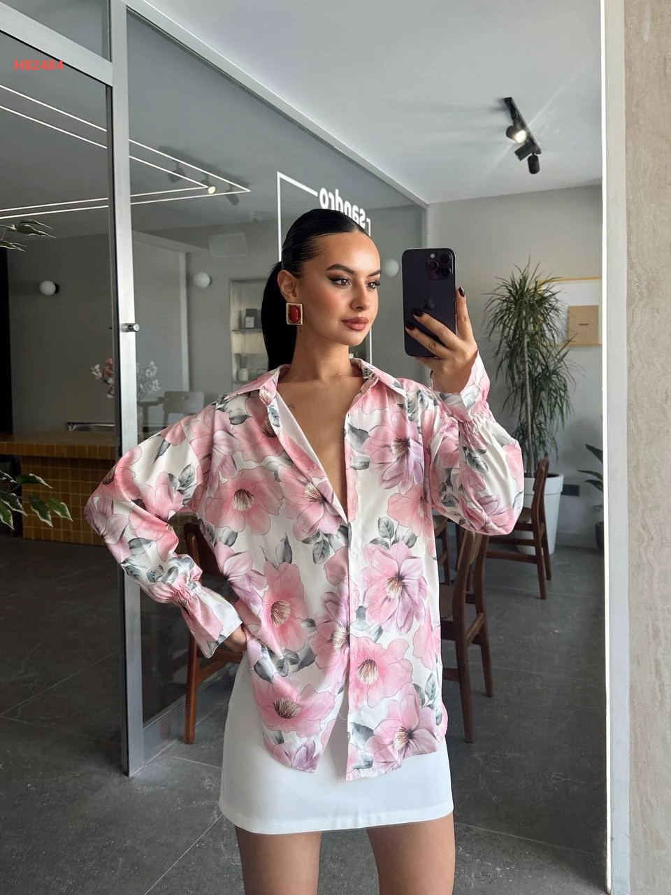 قميص كم طويل منقوش