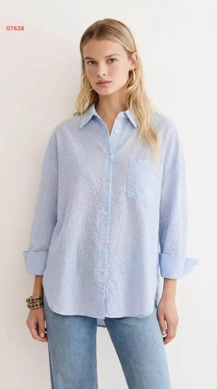 قميص كم طويل منقوش