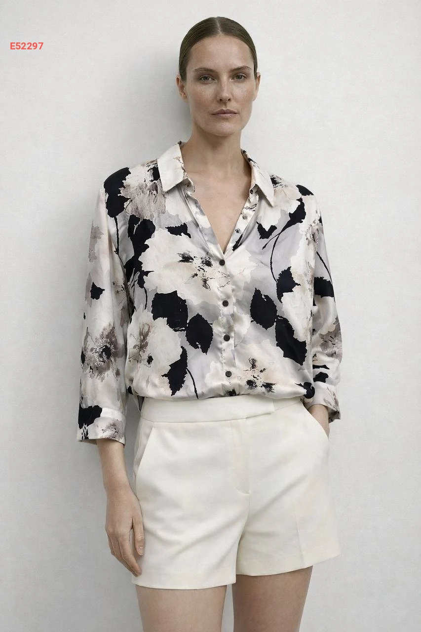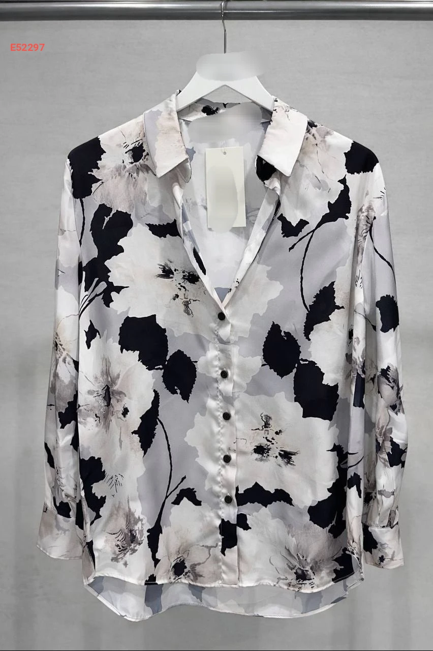 قميص كم طويل منقوش