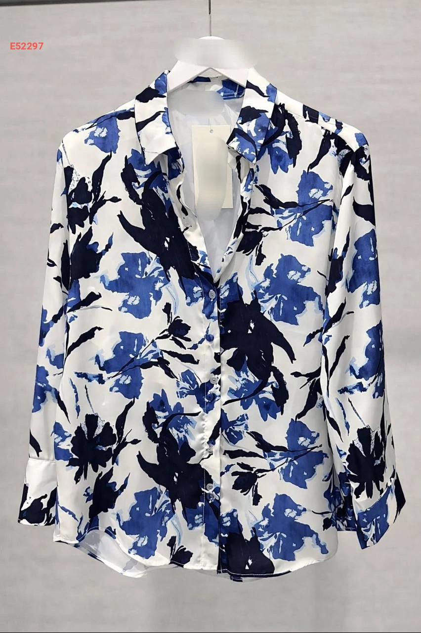 قميص كم طويل منقوش