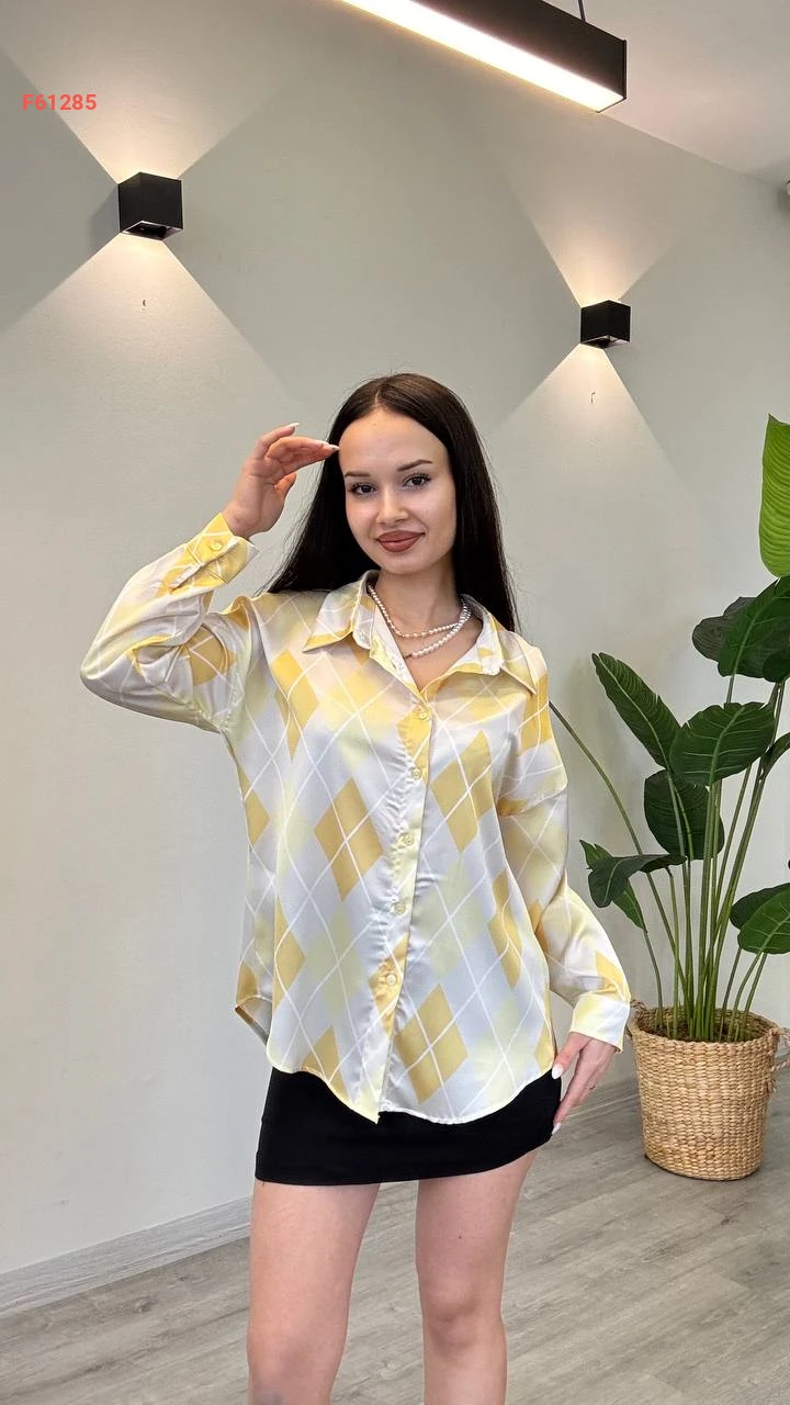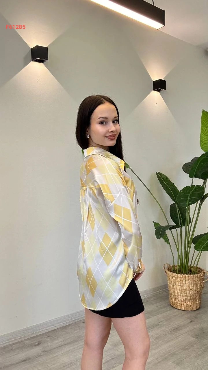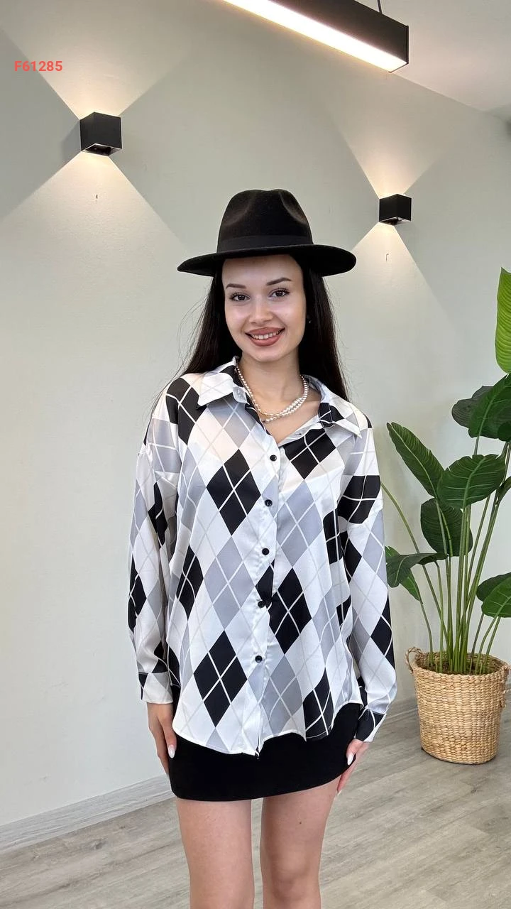 قميص كم طويل منقوش
