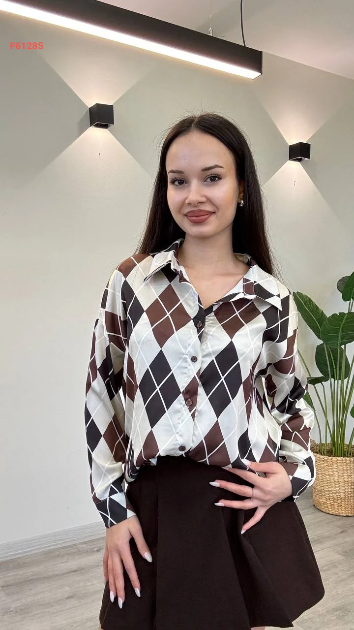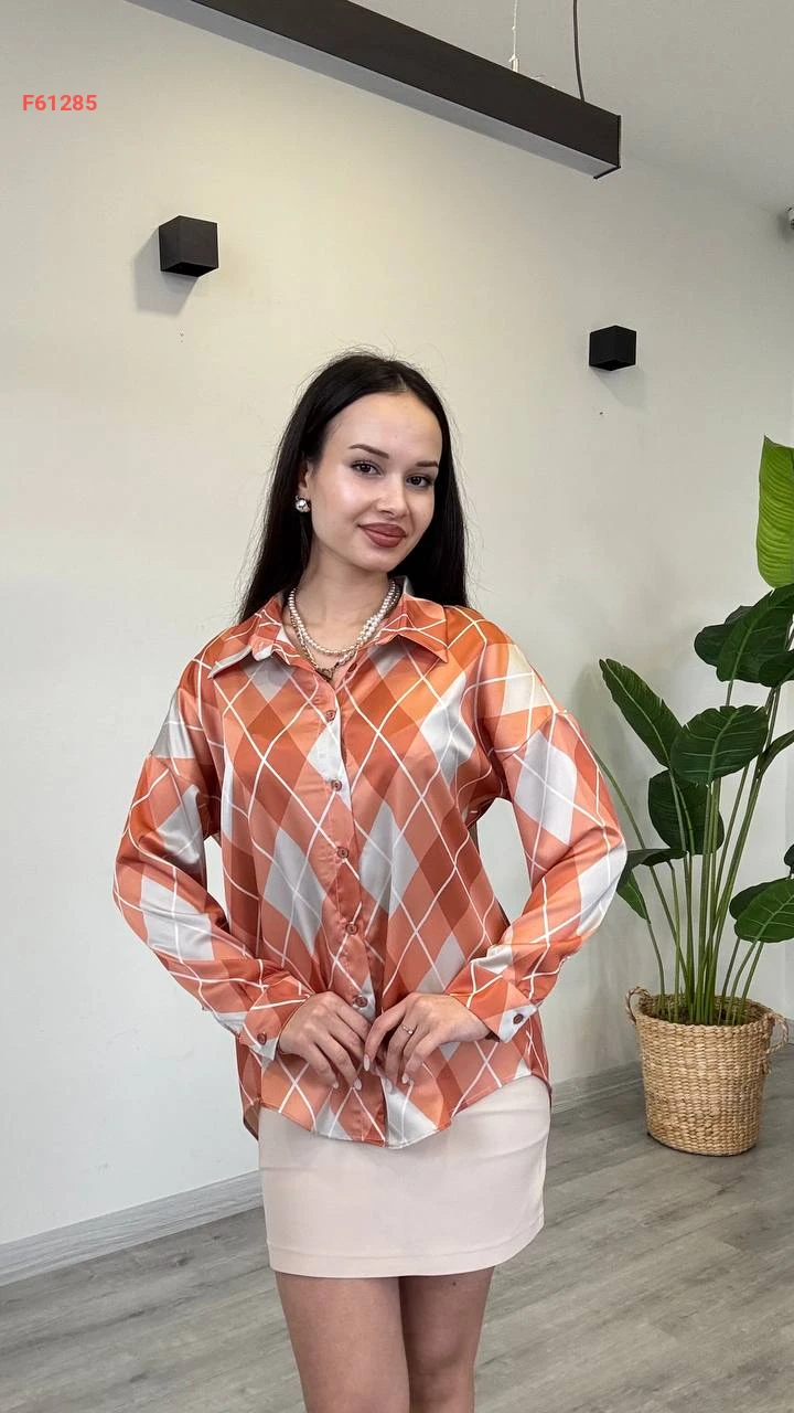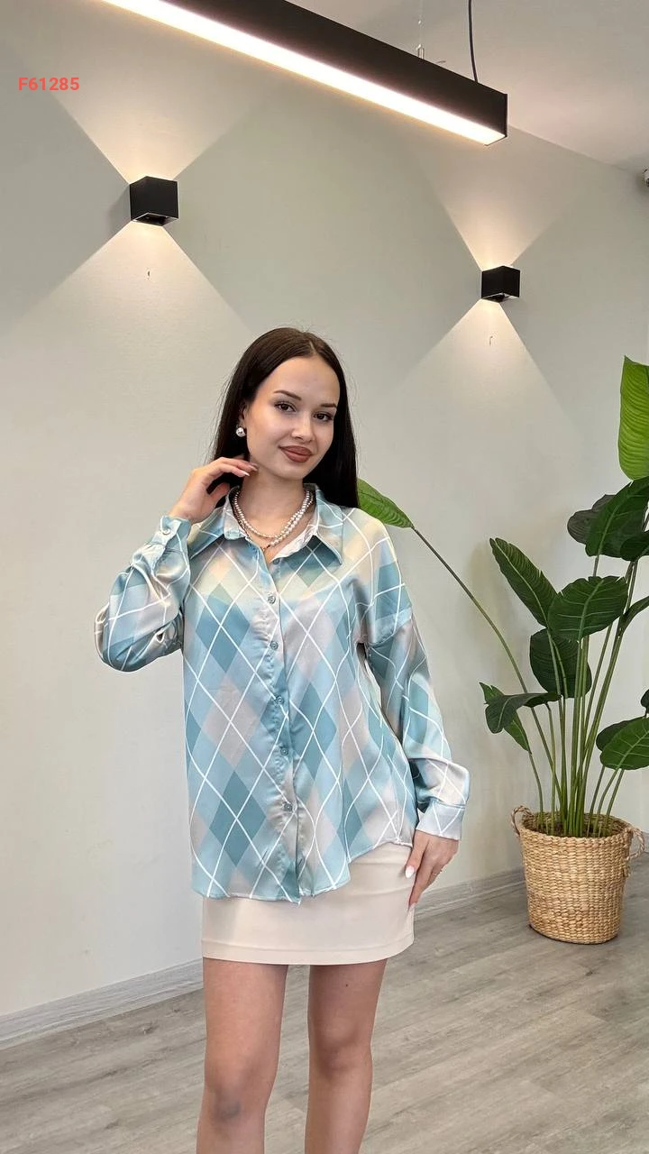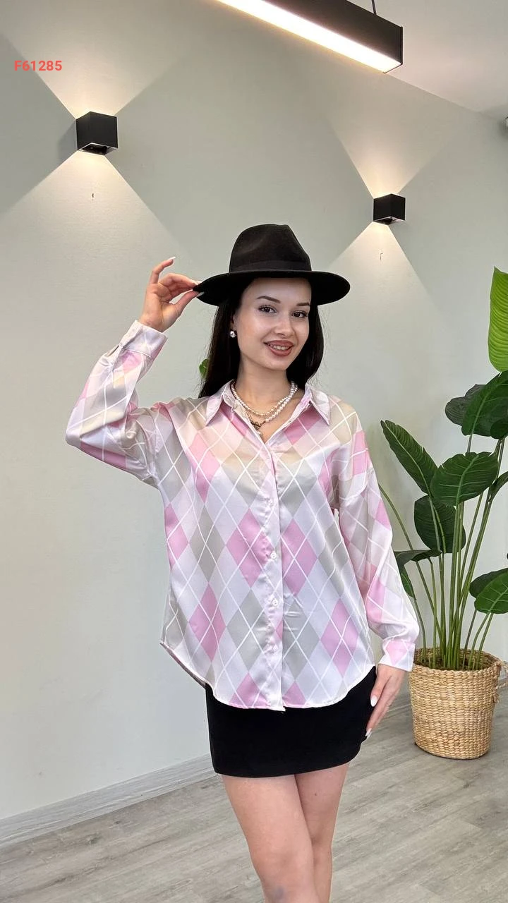 قميص كم طويل منقوش