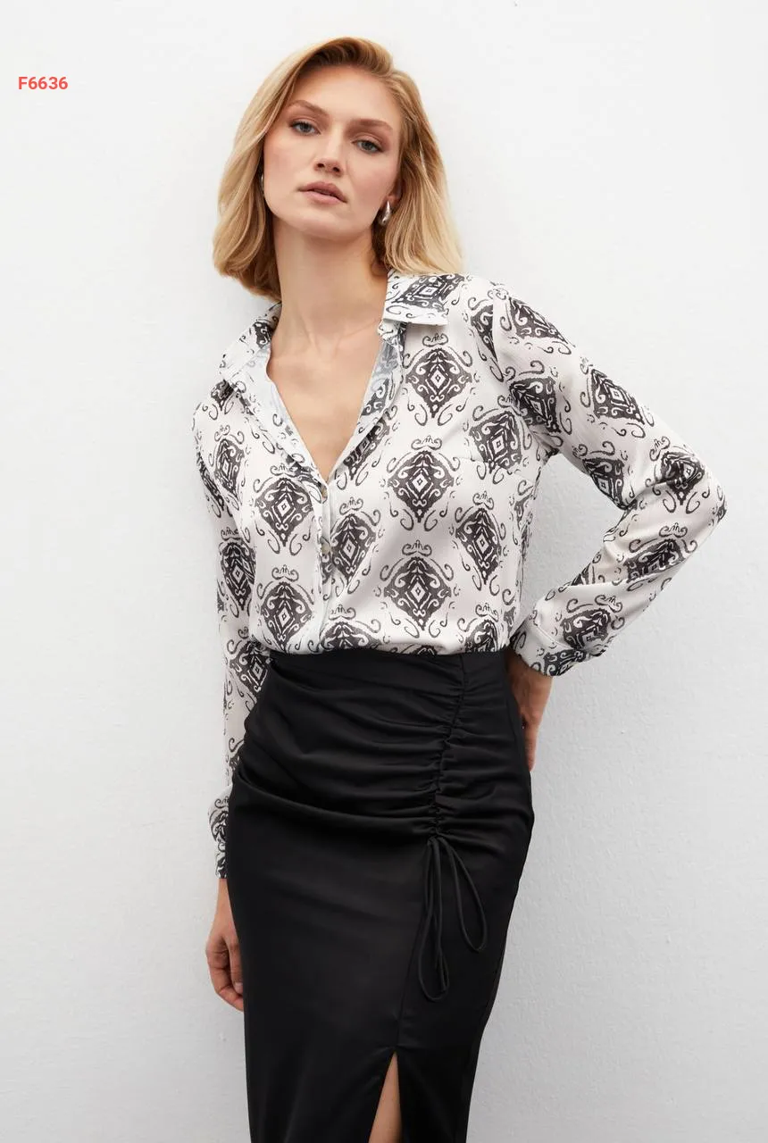 قميص كم طويل منقوش