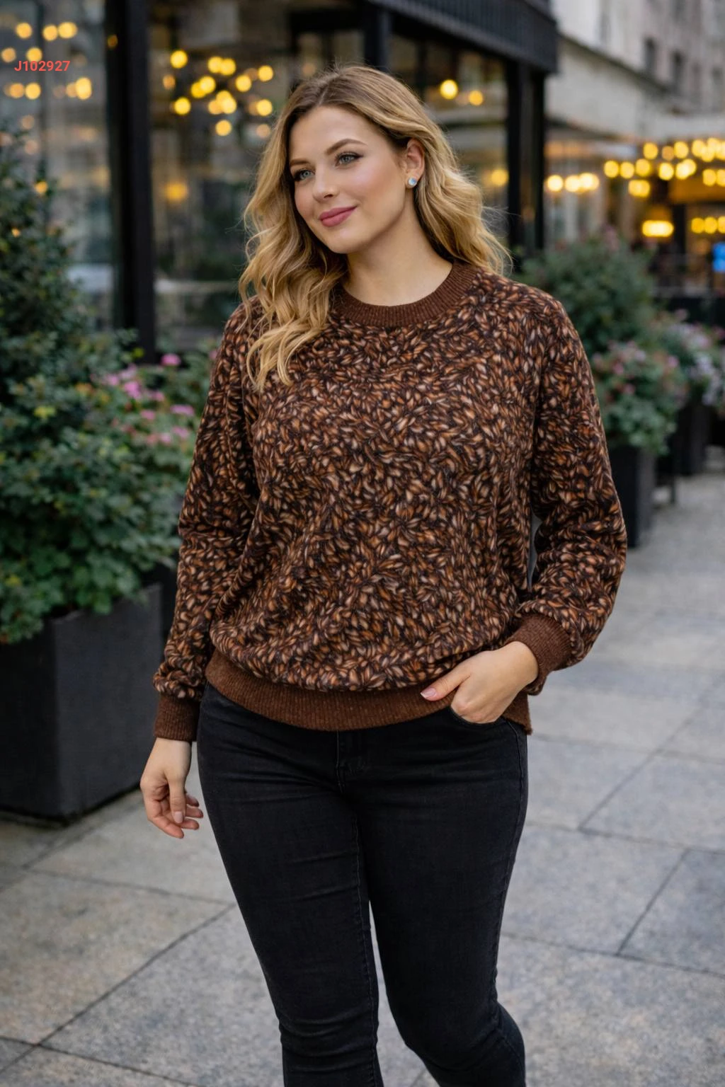 كنزة كم طويل منقوشة