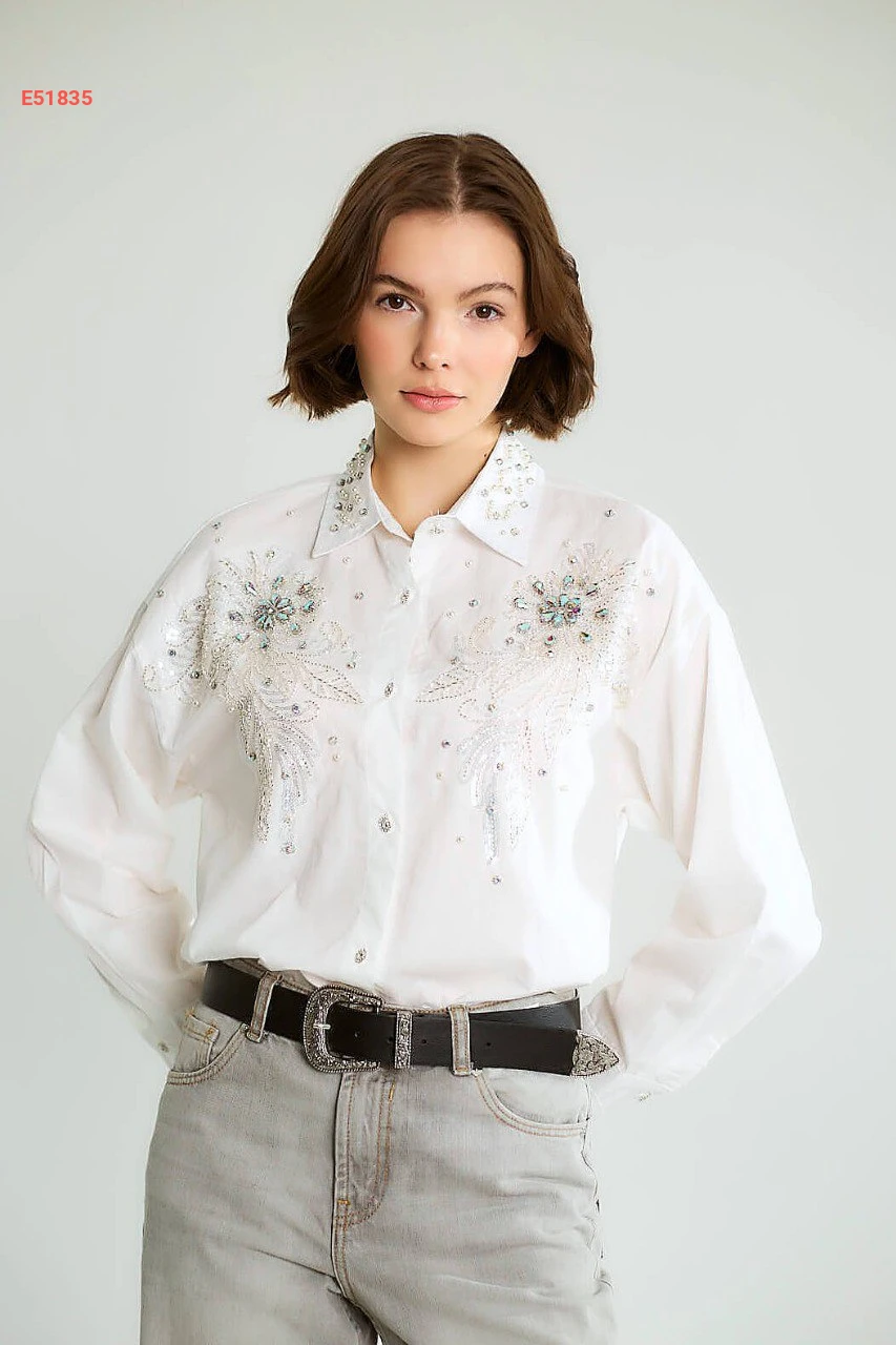 قميص كم طويل مطرز بالأحجار