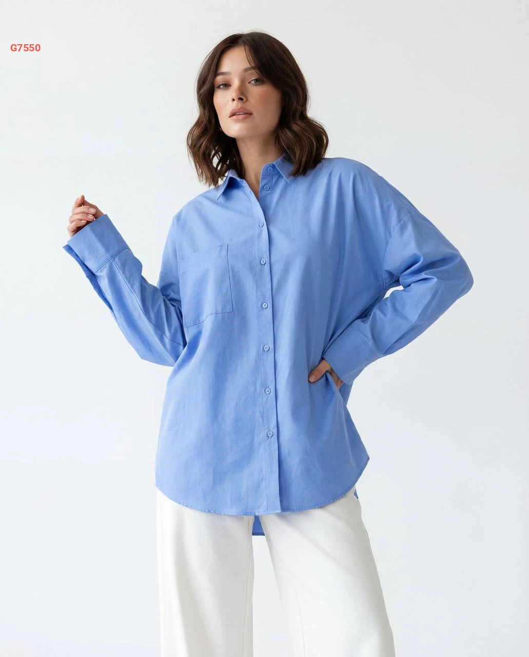 قميص كم طويل بجيب أمامي