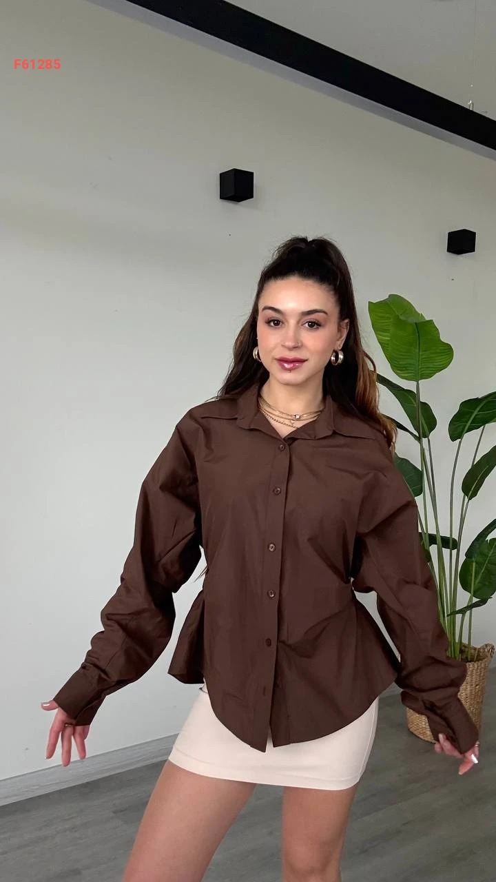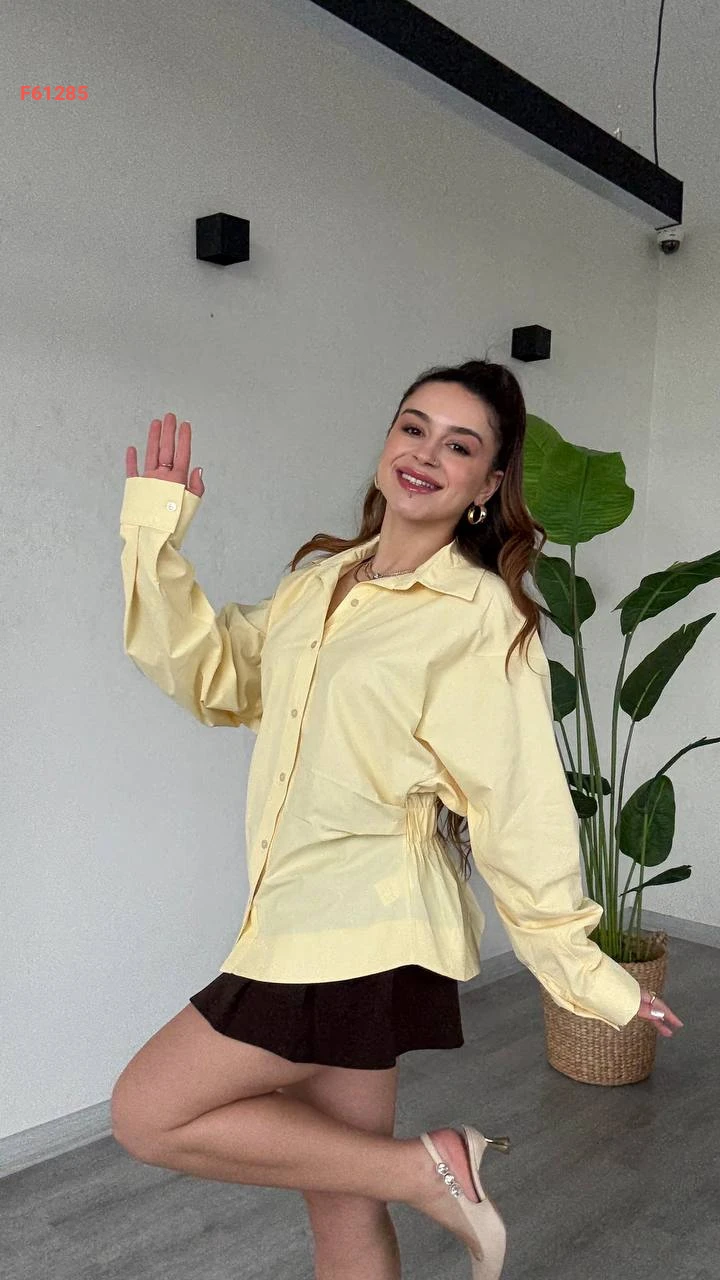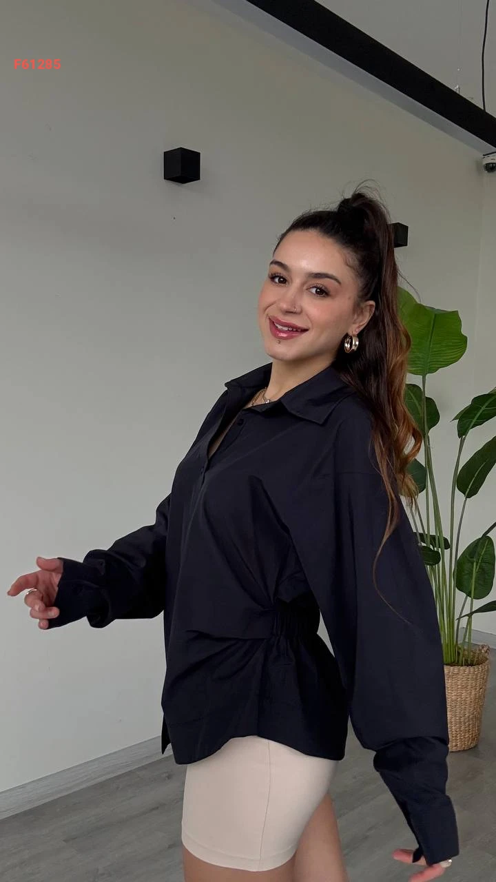 قميص كم طويل مطاط من الخلف