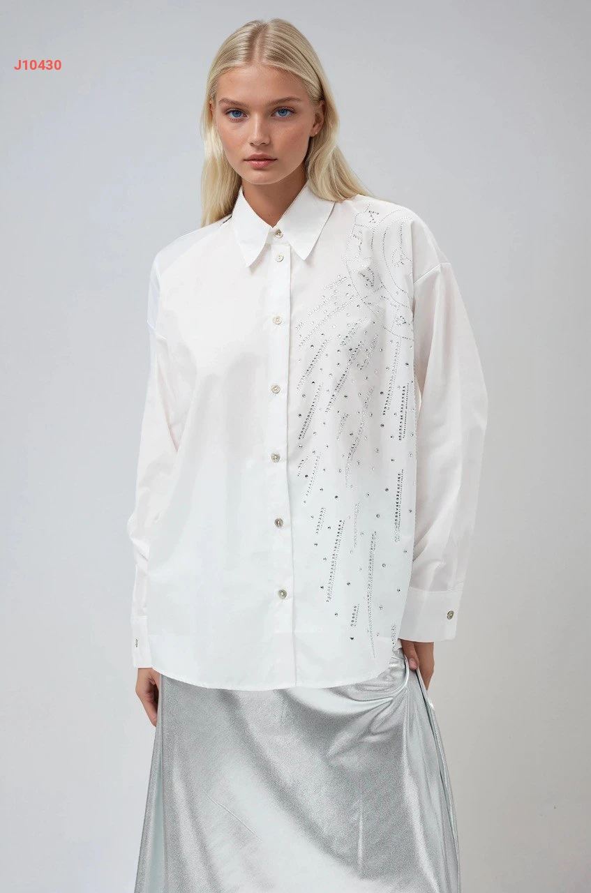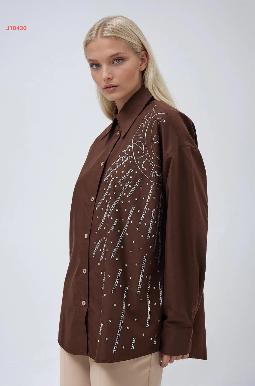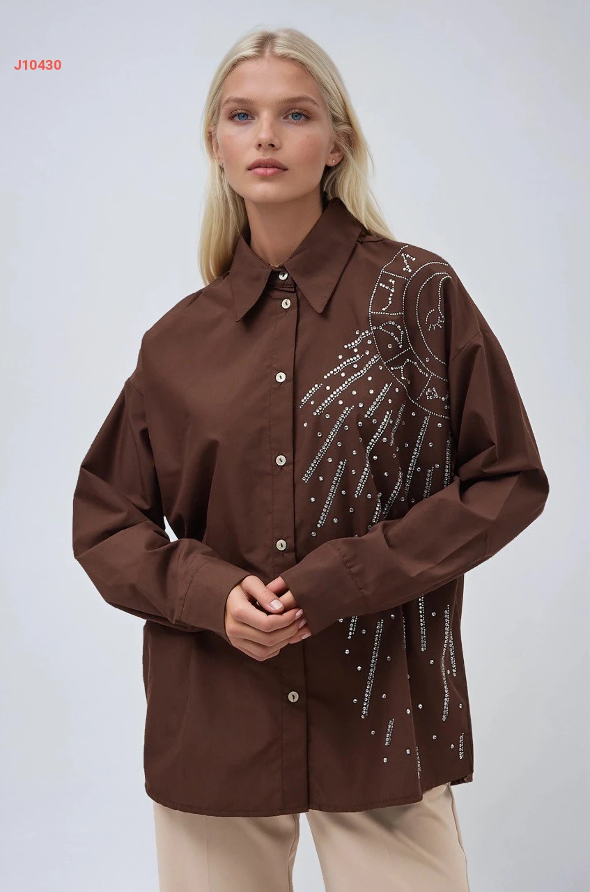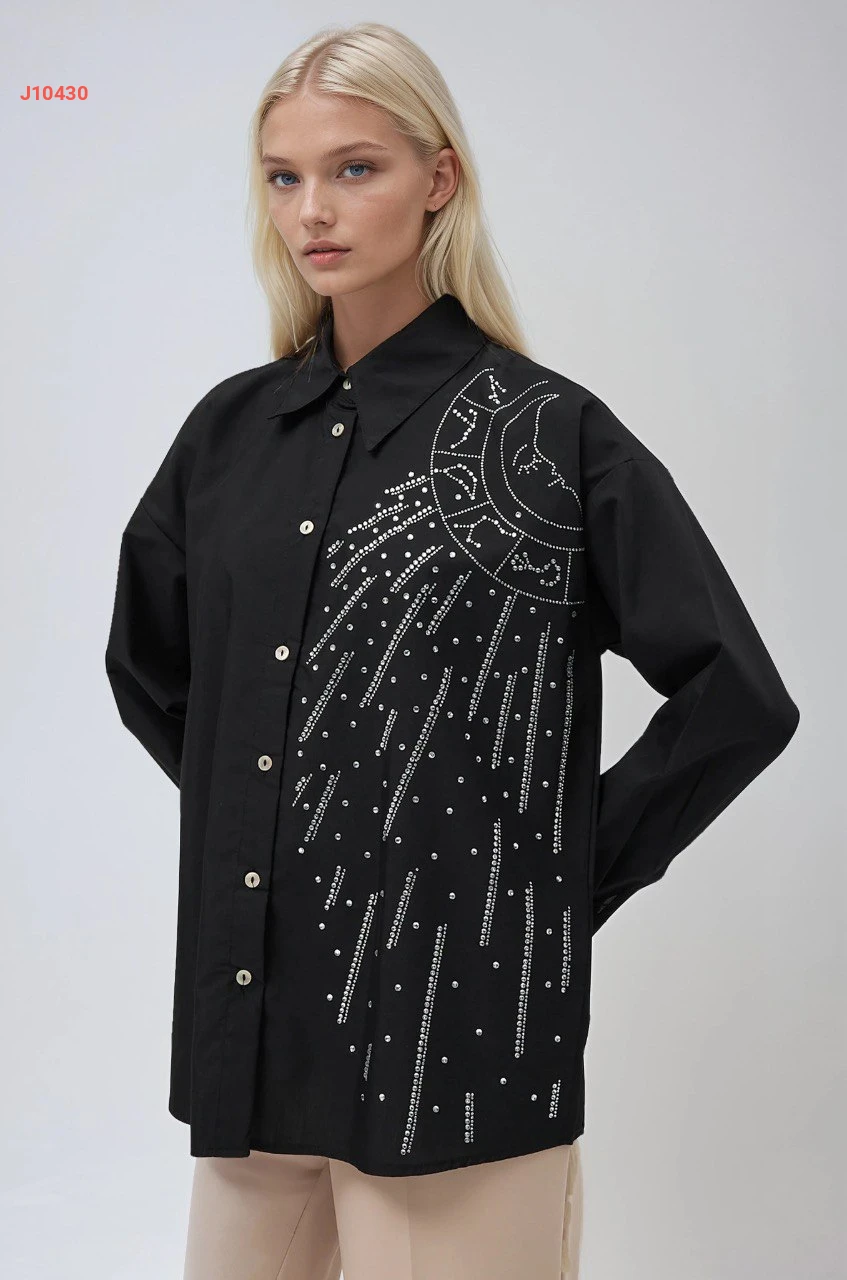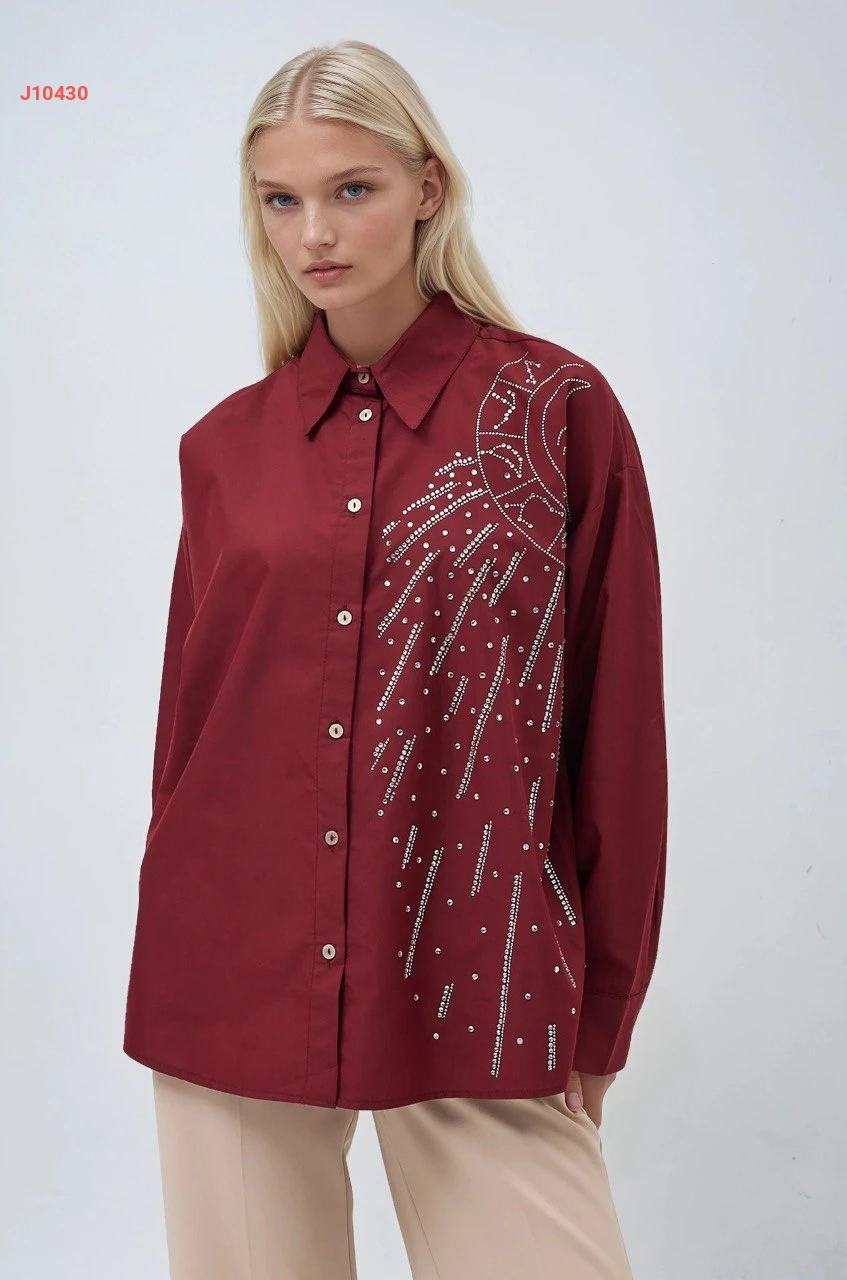 قميص كم طويل مطرز أحجار