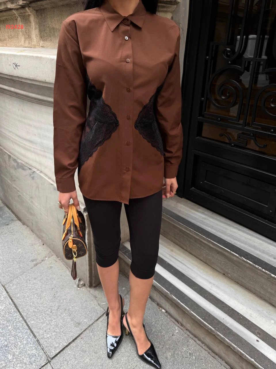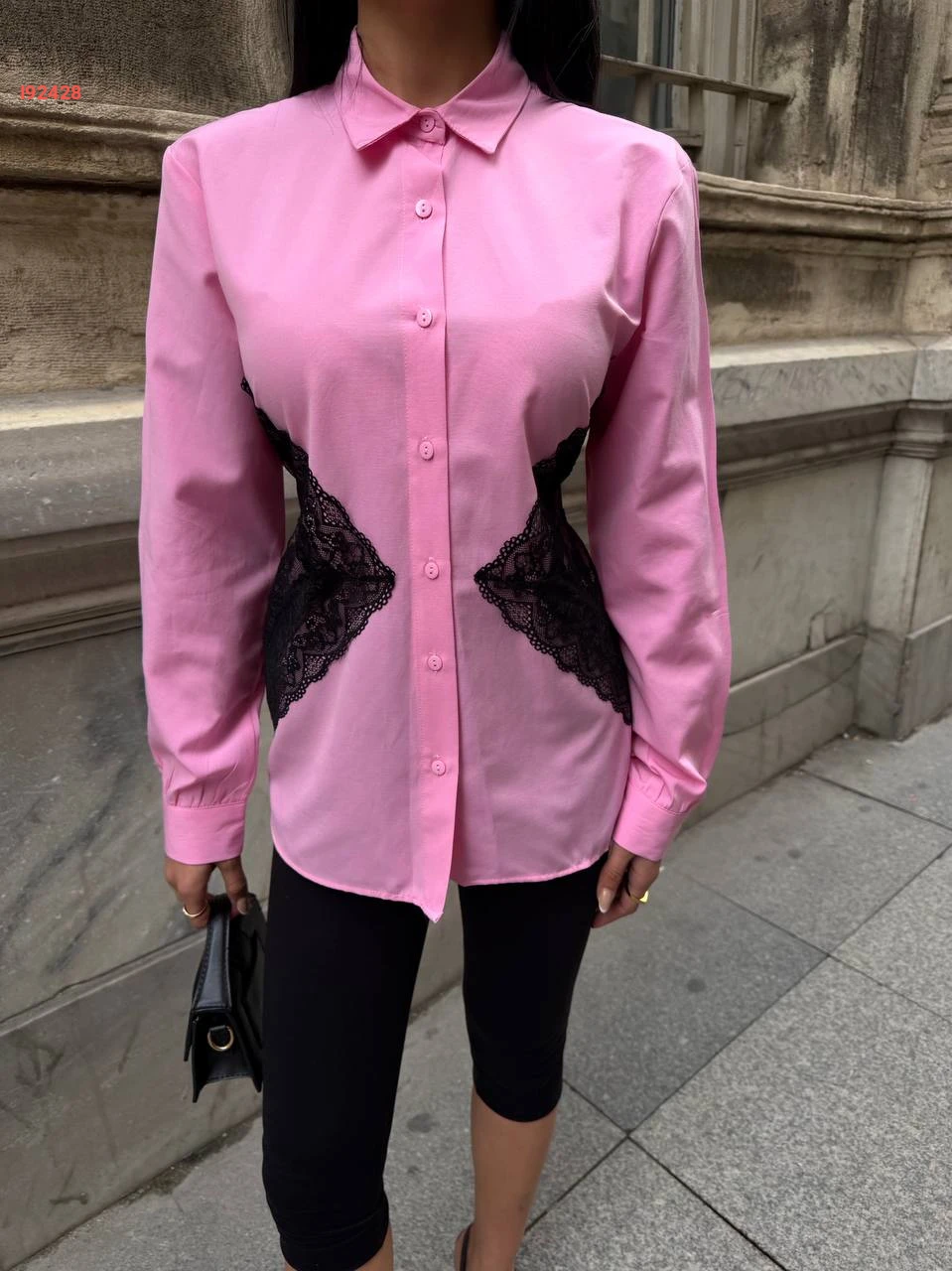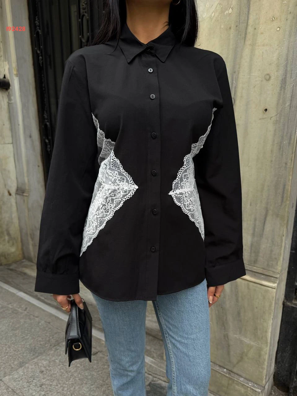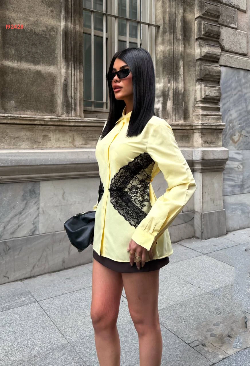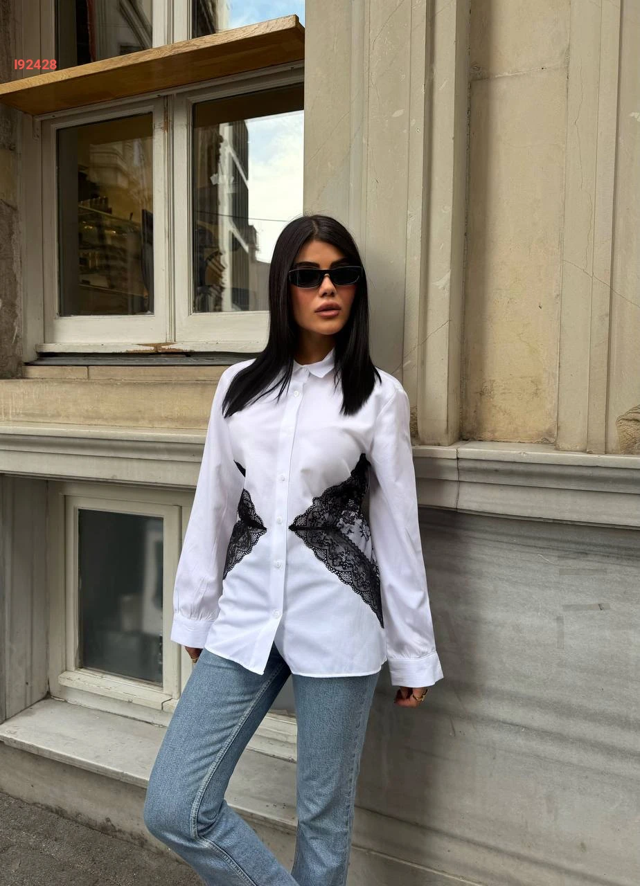 قميص كم طويل مع دانتيل