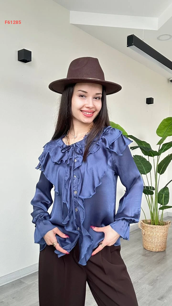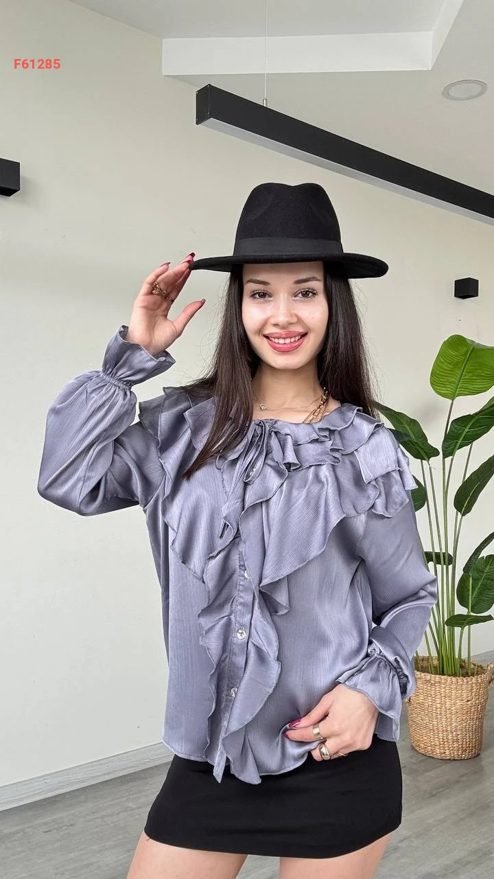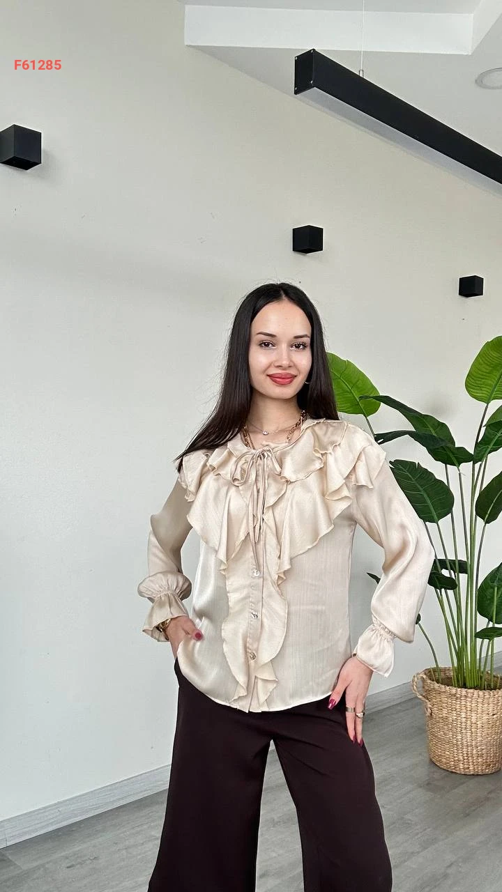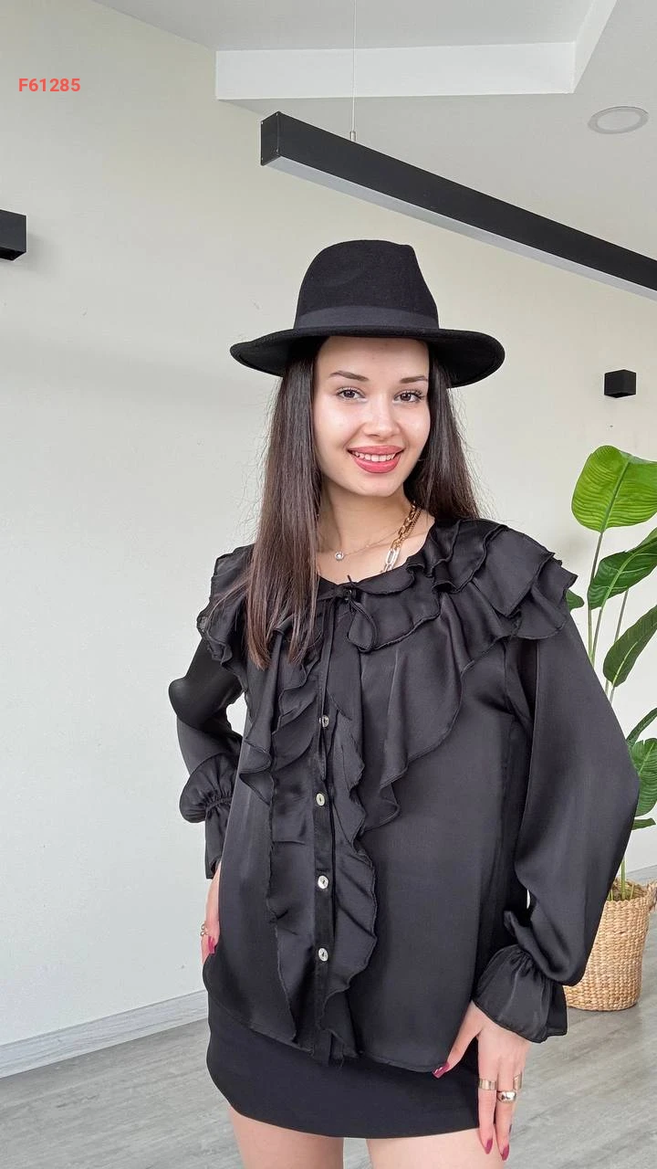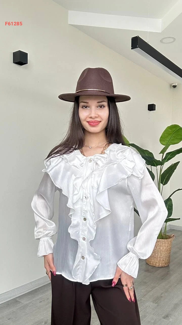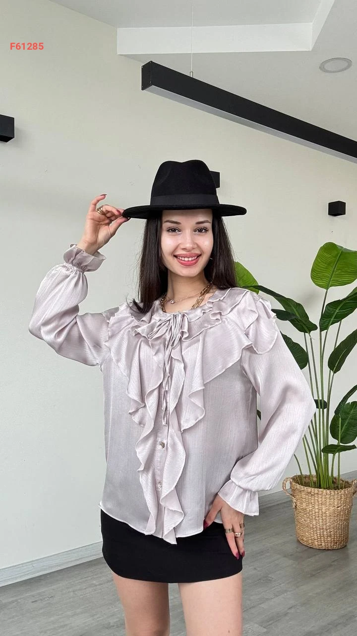 قميص كم طويل بتفاصيل كشكش
