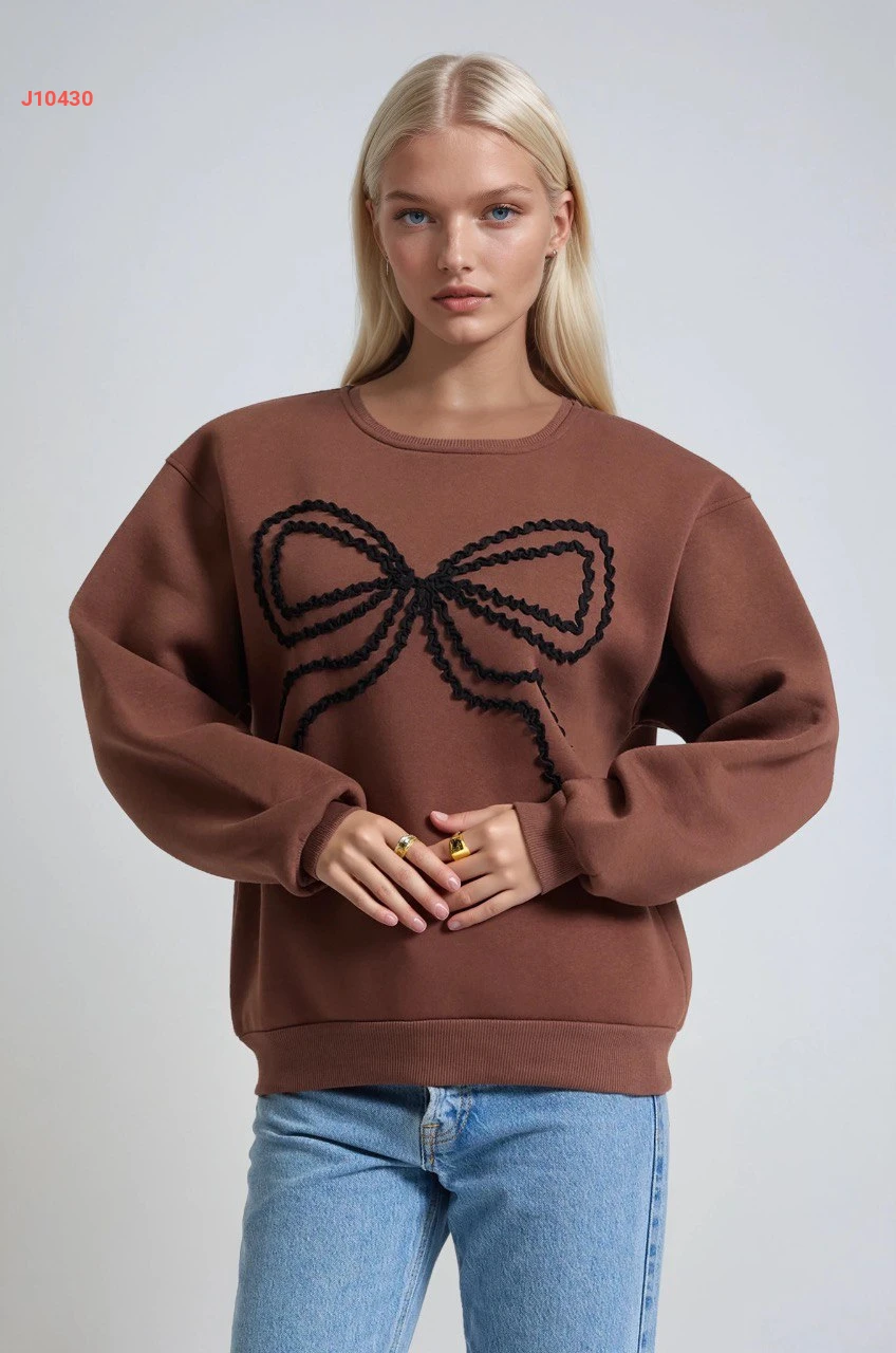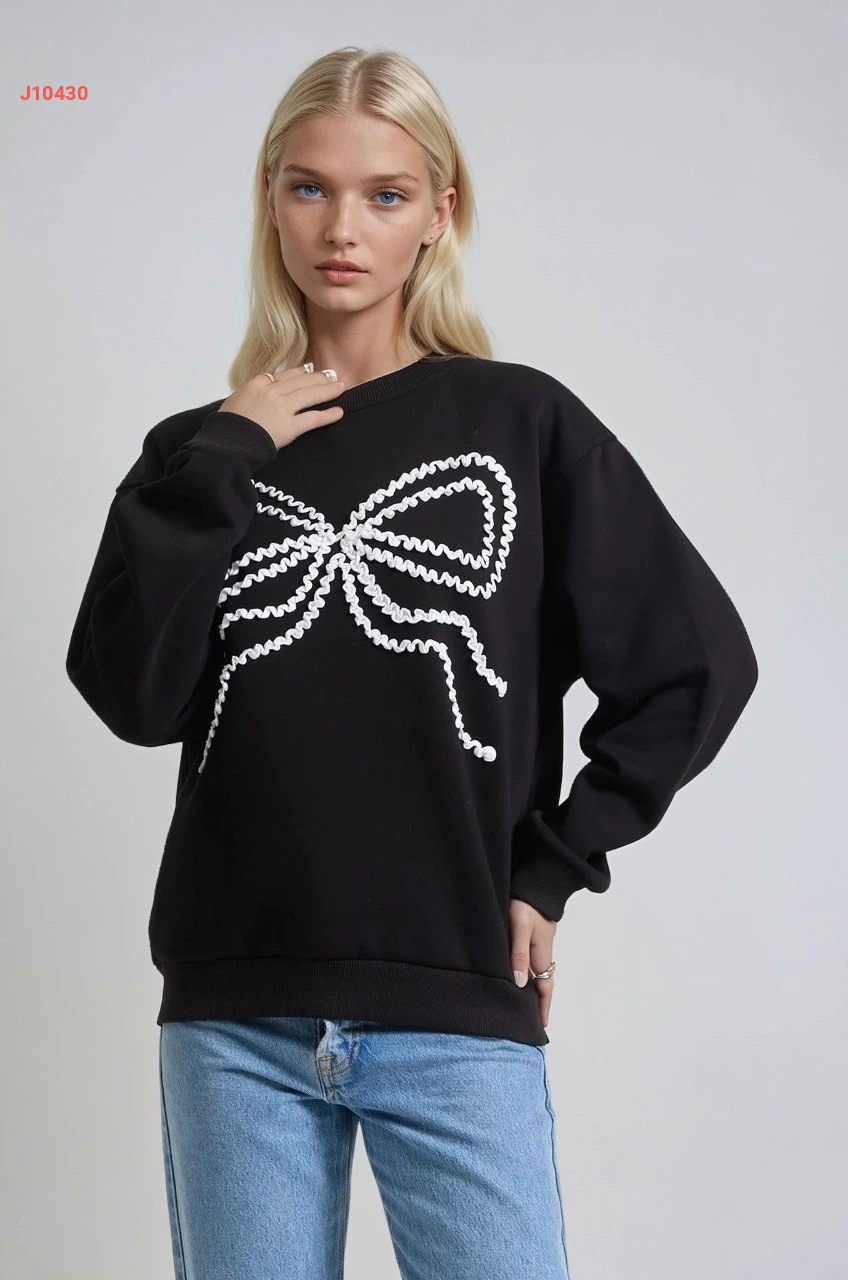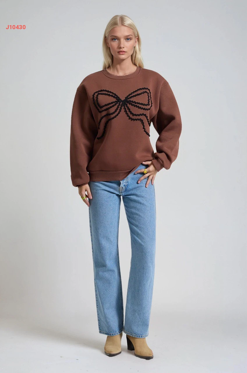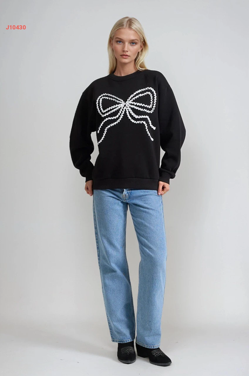 كنزة كم طويل مطرزة بفيونك