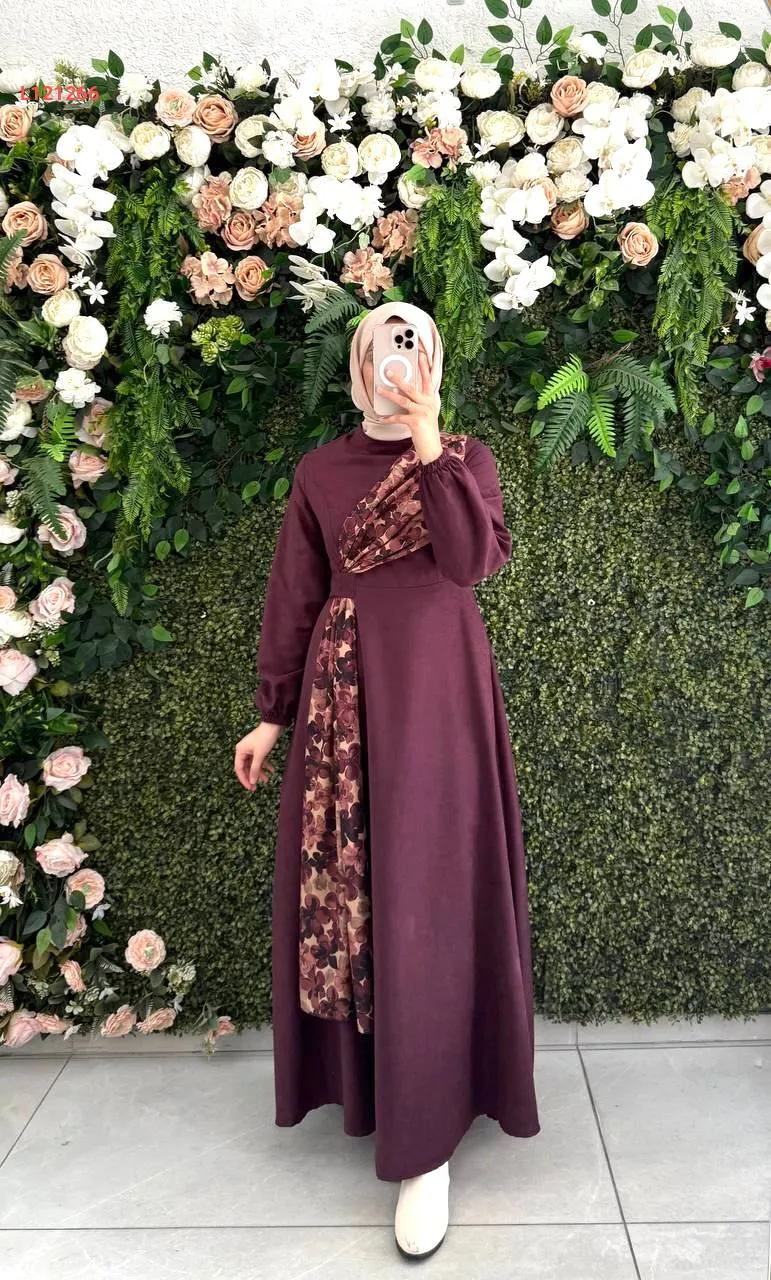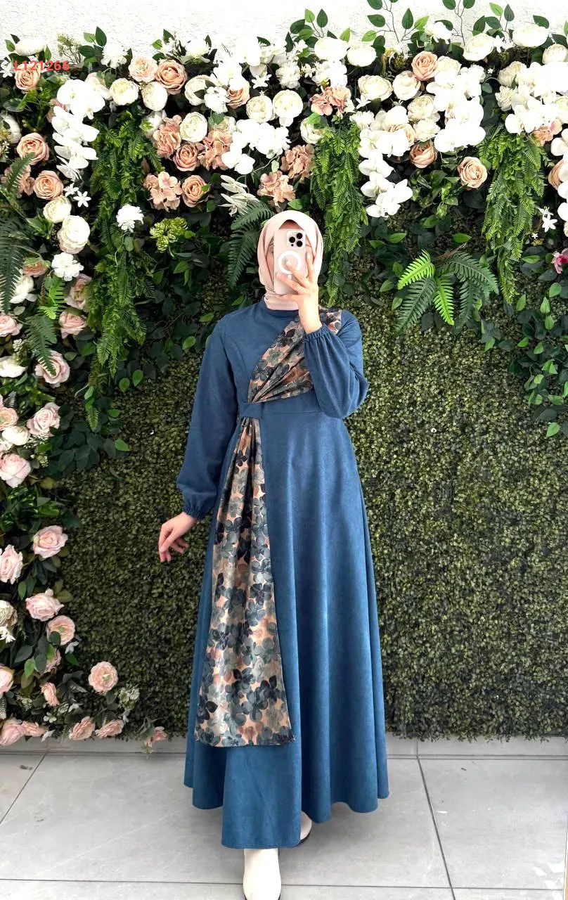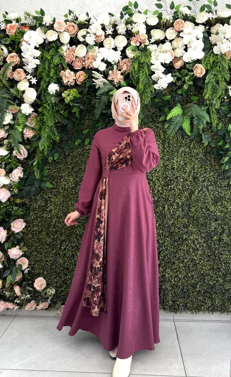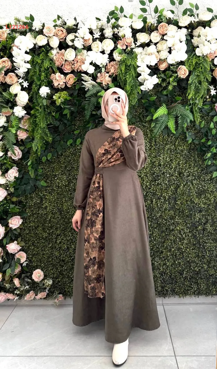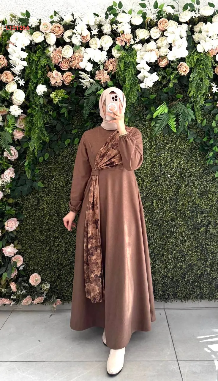 فستان طويل شامواه بتفاصيل موردة