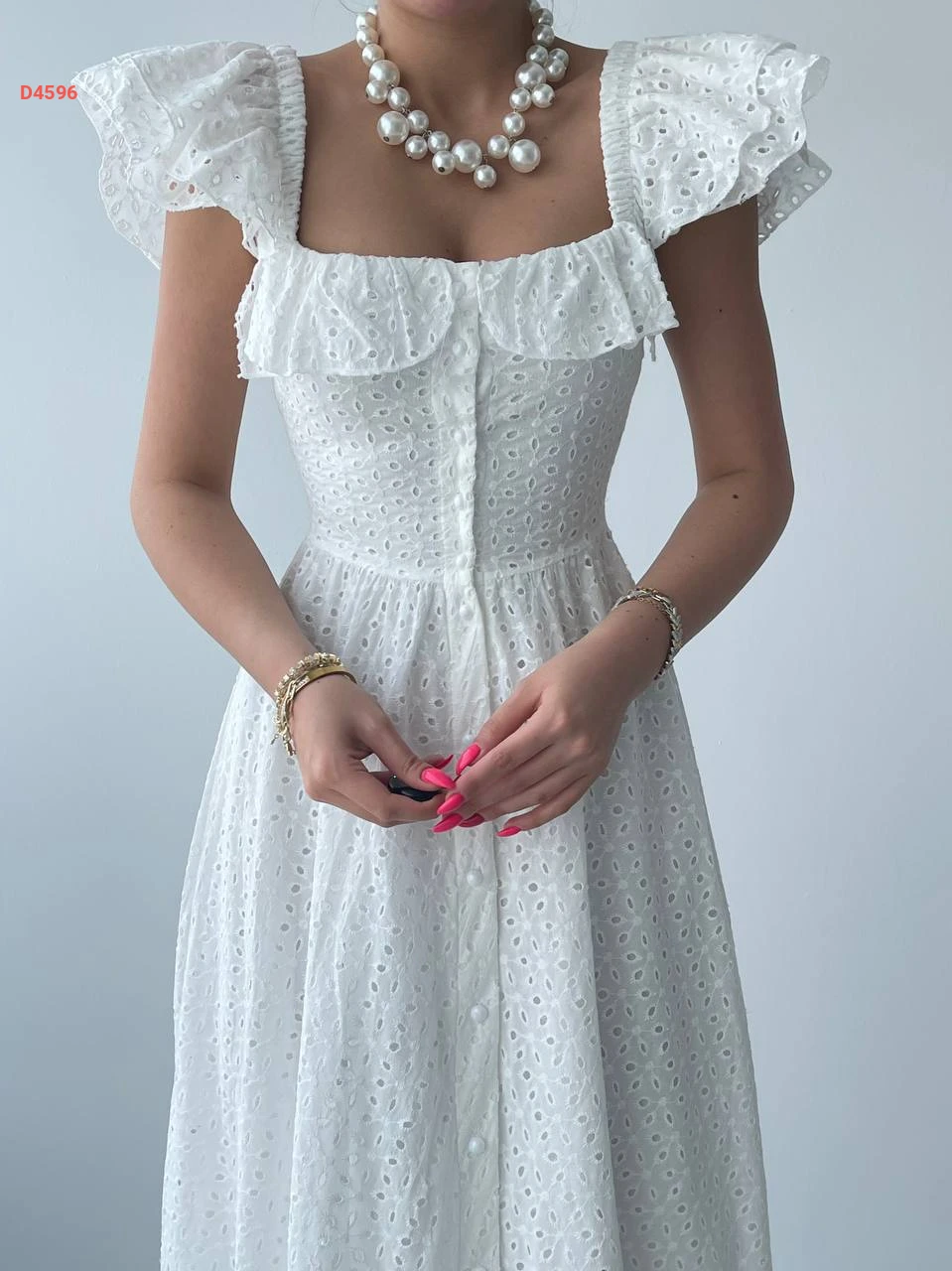 فستان صيفي طويل مطرز بأزرار