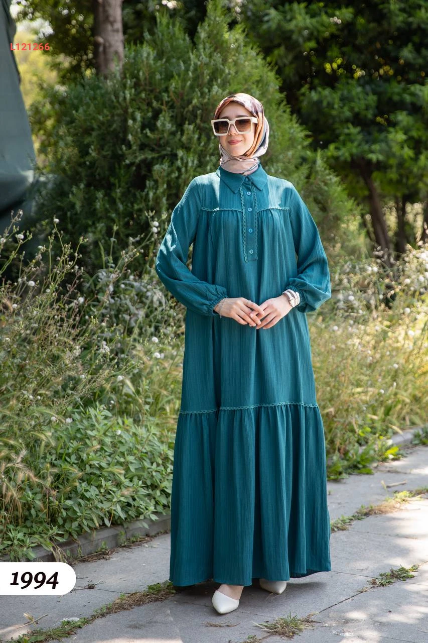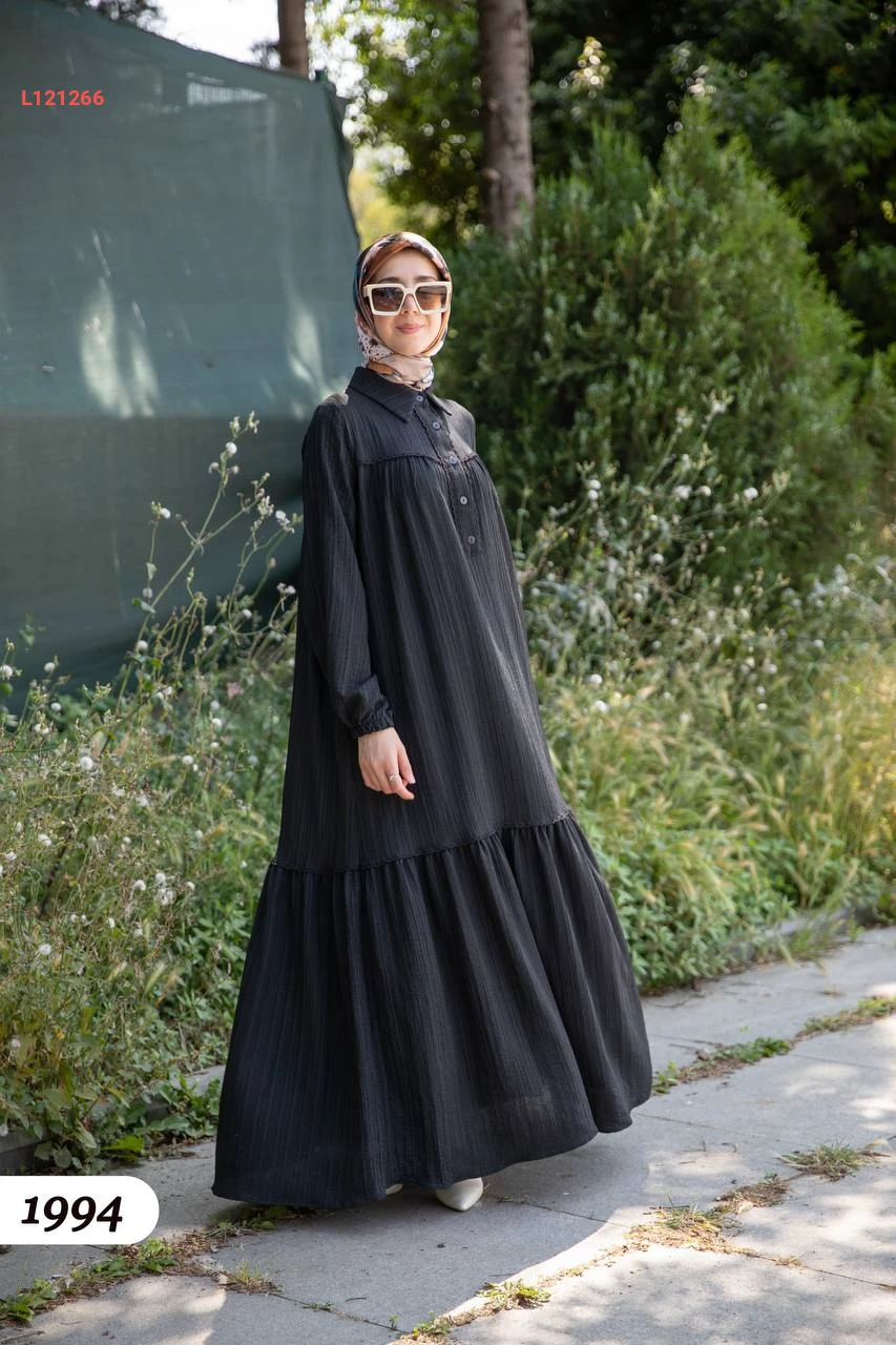 فستان صيفي طويل بأزرار نصفية