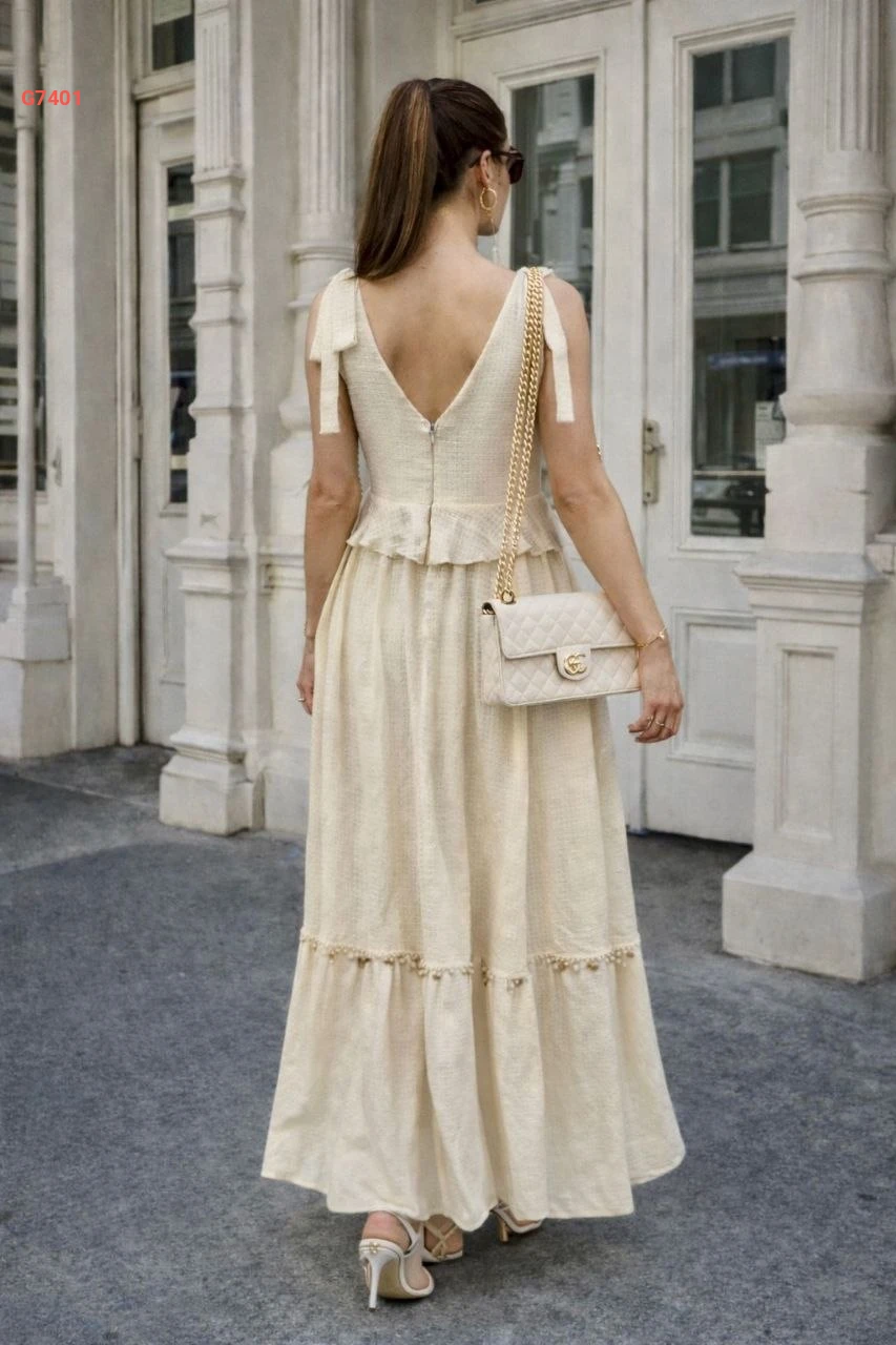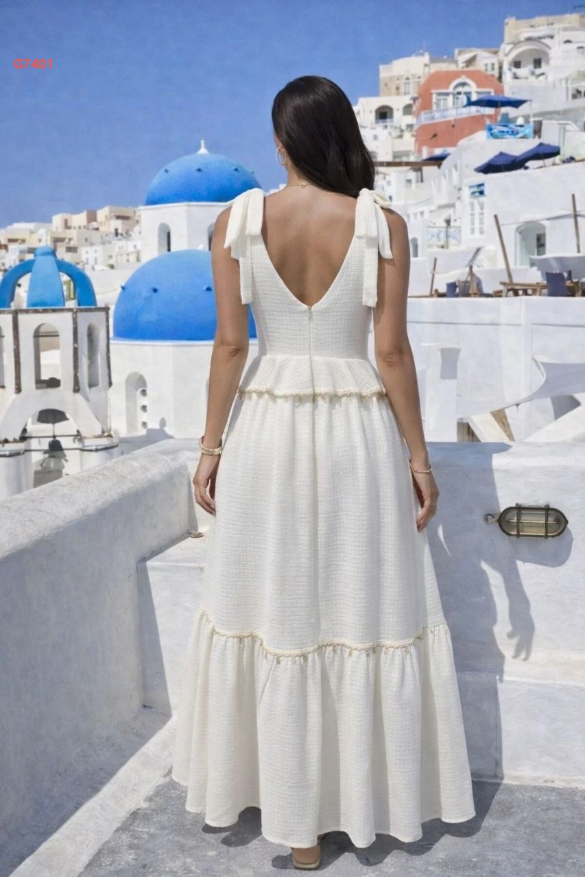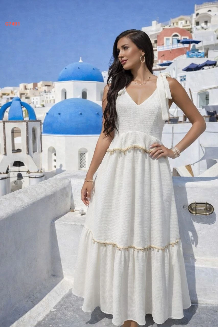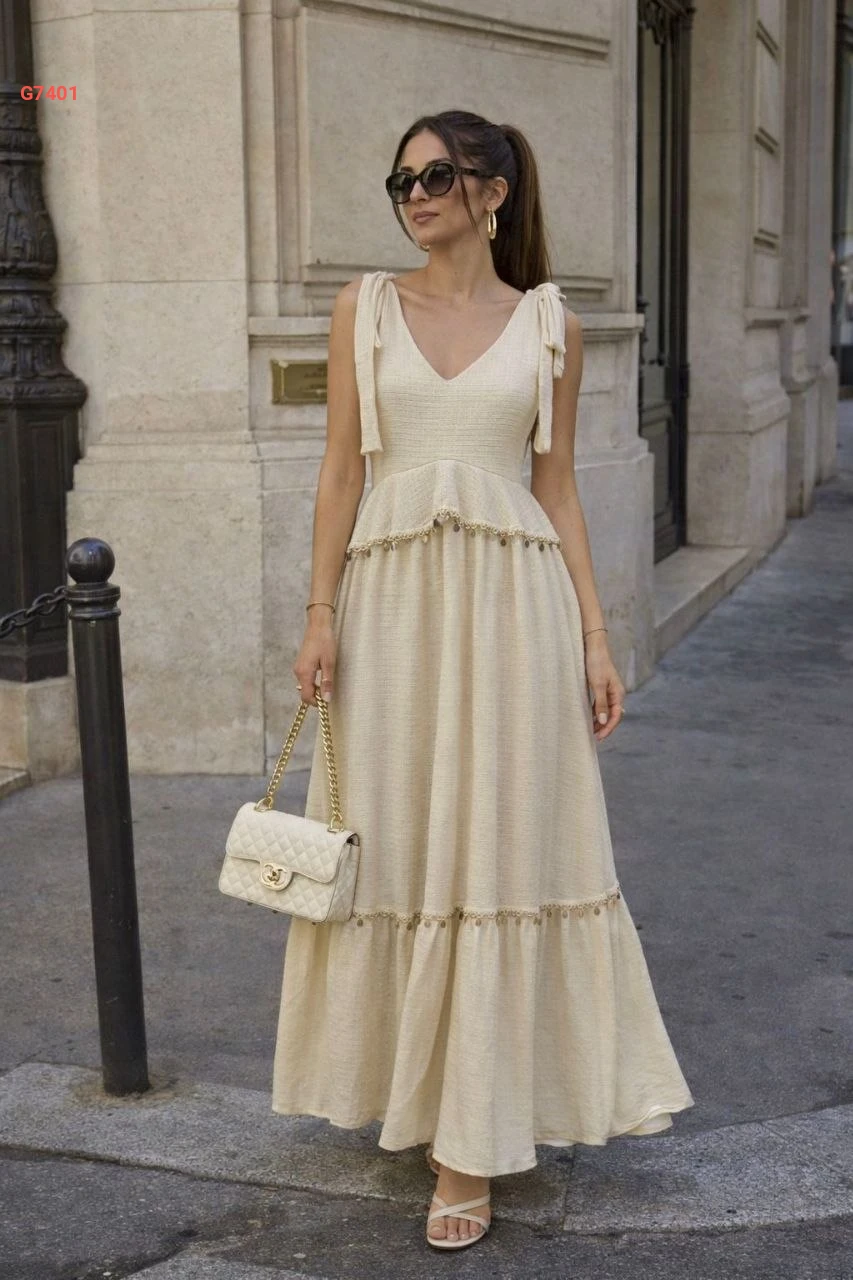 فستان صيفي طويل بربطات عالكتف