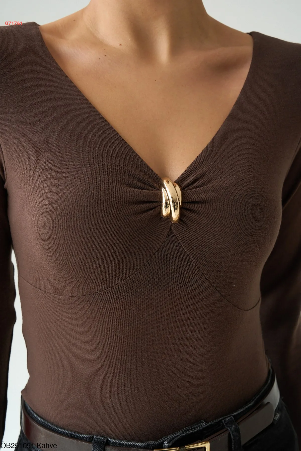 كنزة كم طويل بإبزيم عالصدر