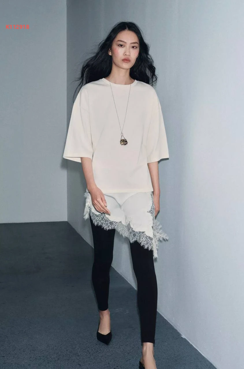 تيشرت طويلة مع دانتيل