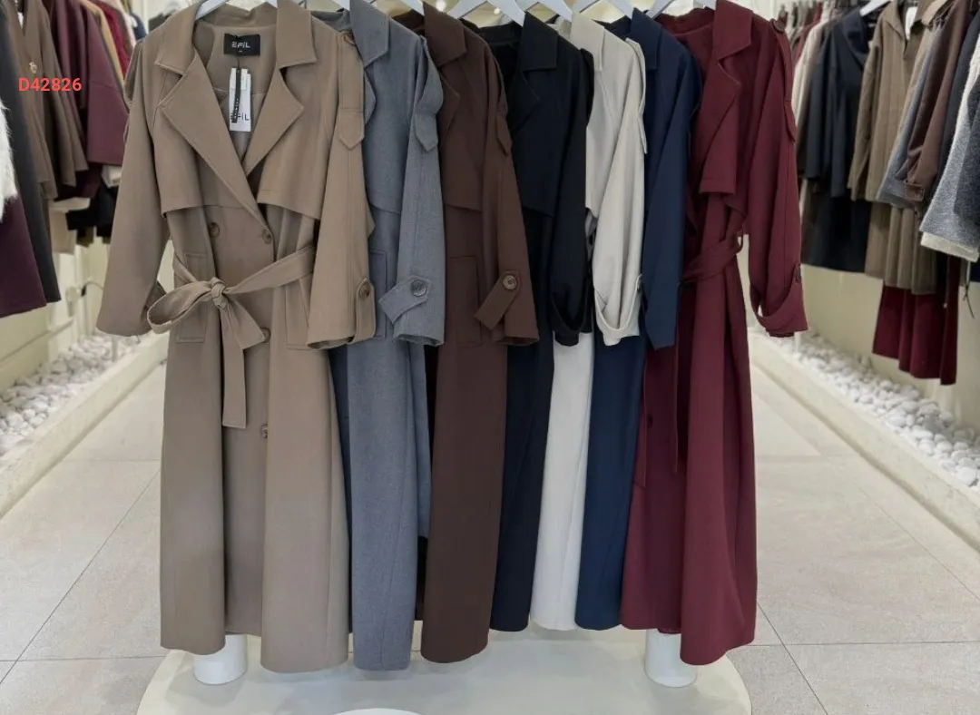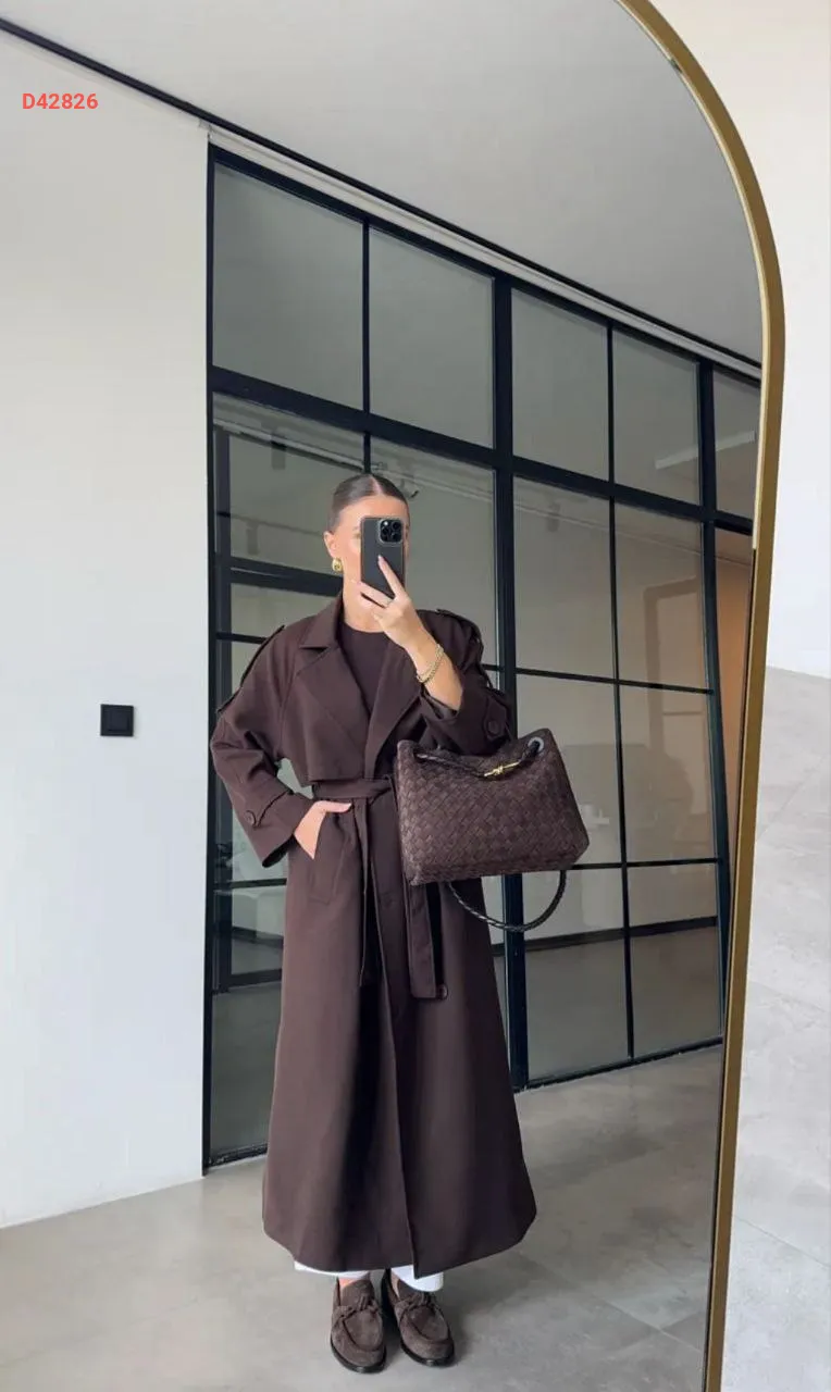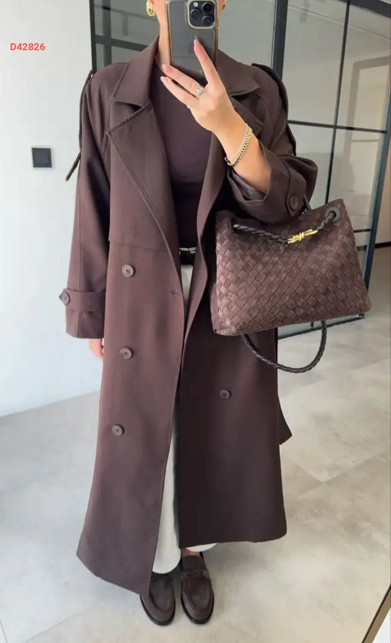 ترانشكوت طويل بأزرار مزدوجة مع حزام