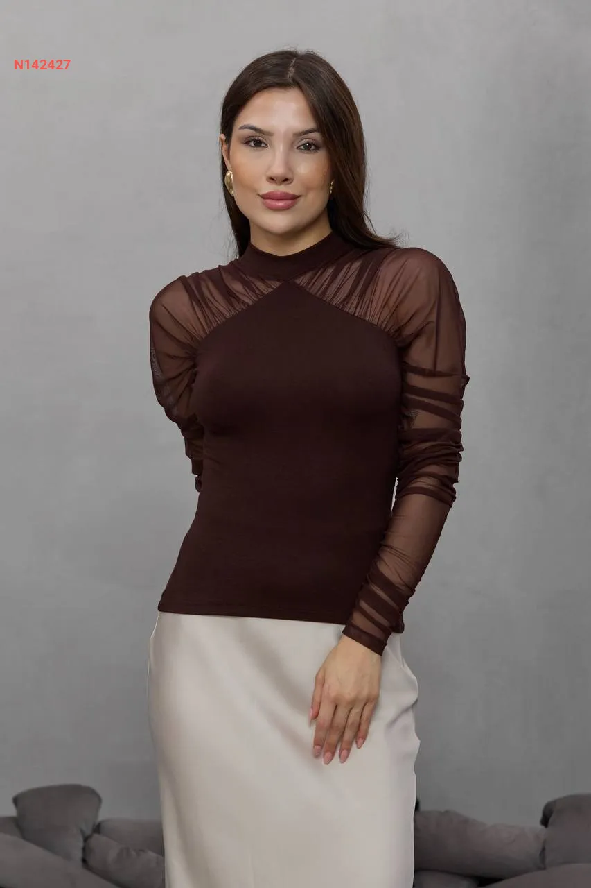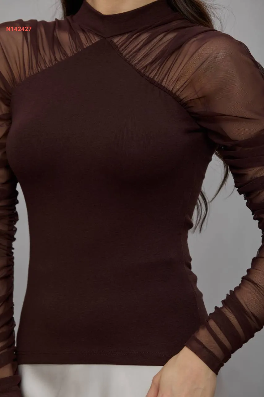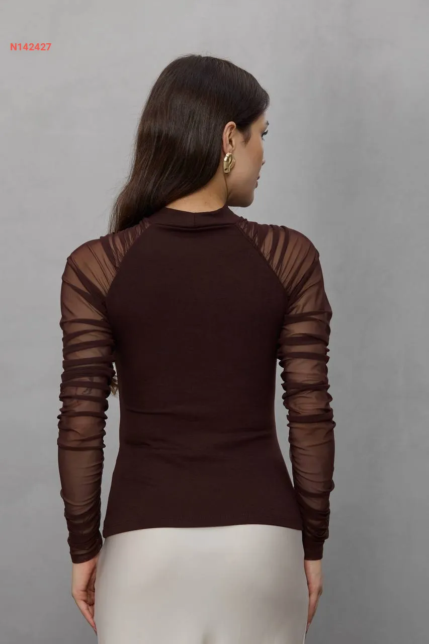 بلوزة بأكمام تول طويلة