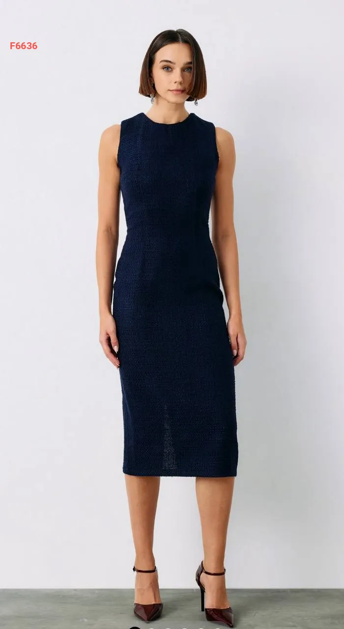 فستان طويل تويد حفر