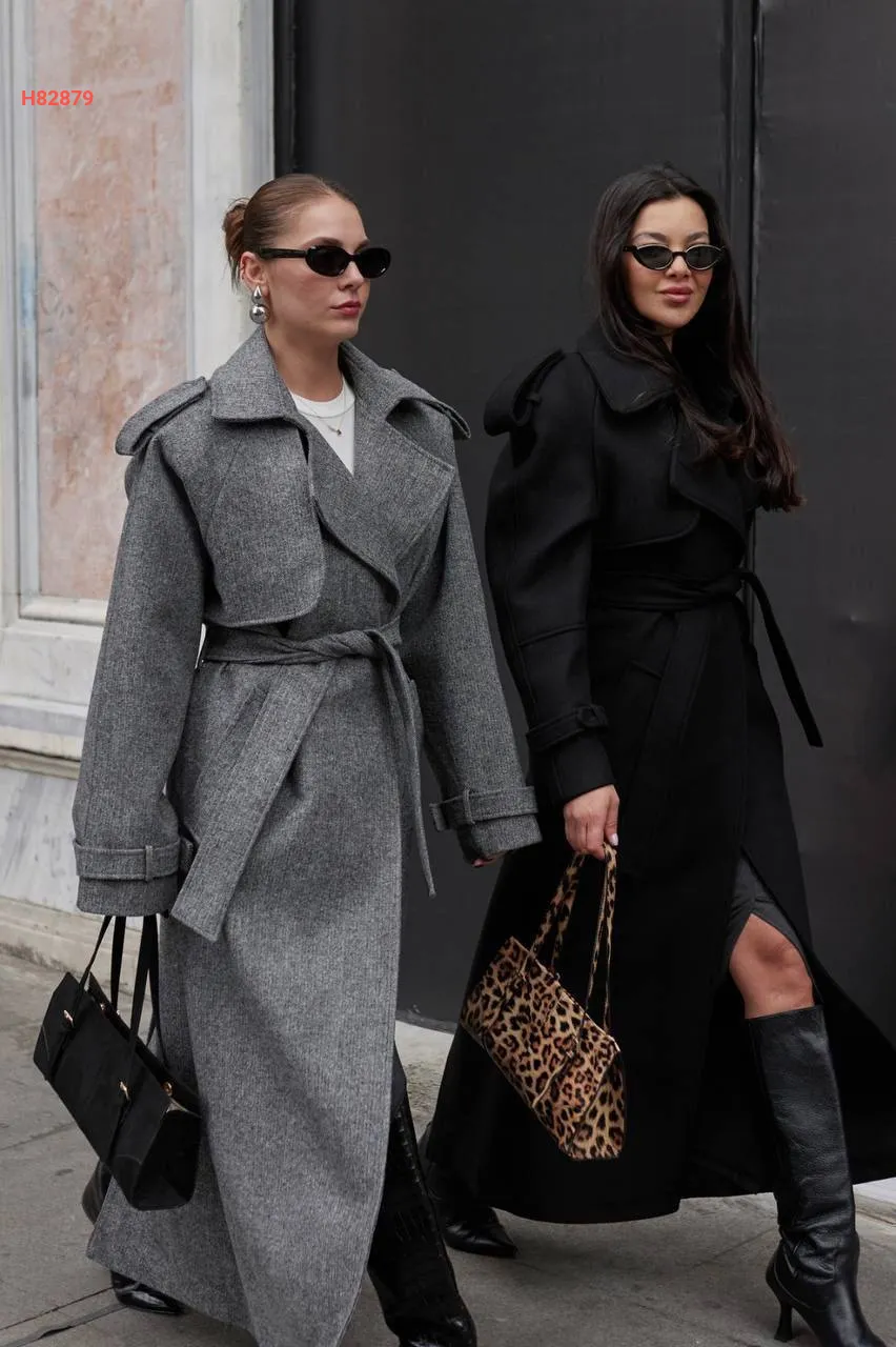 معطف شتوي طويل مع حزام