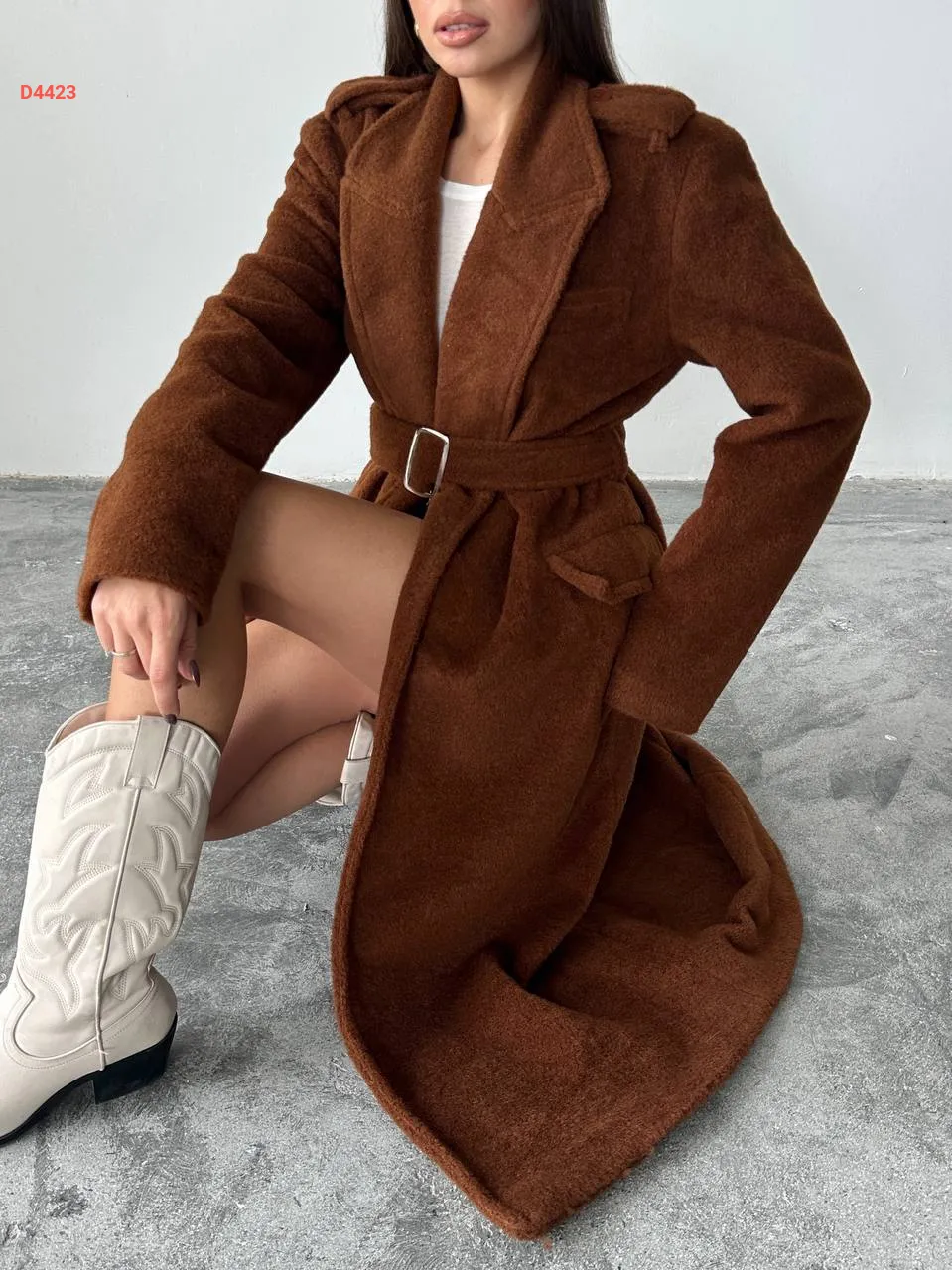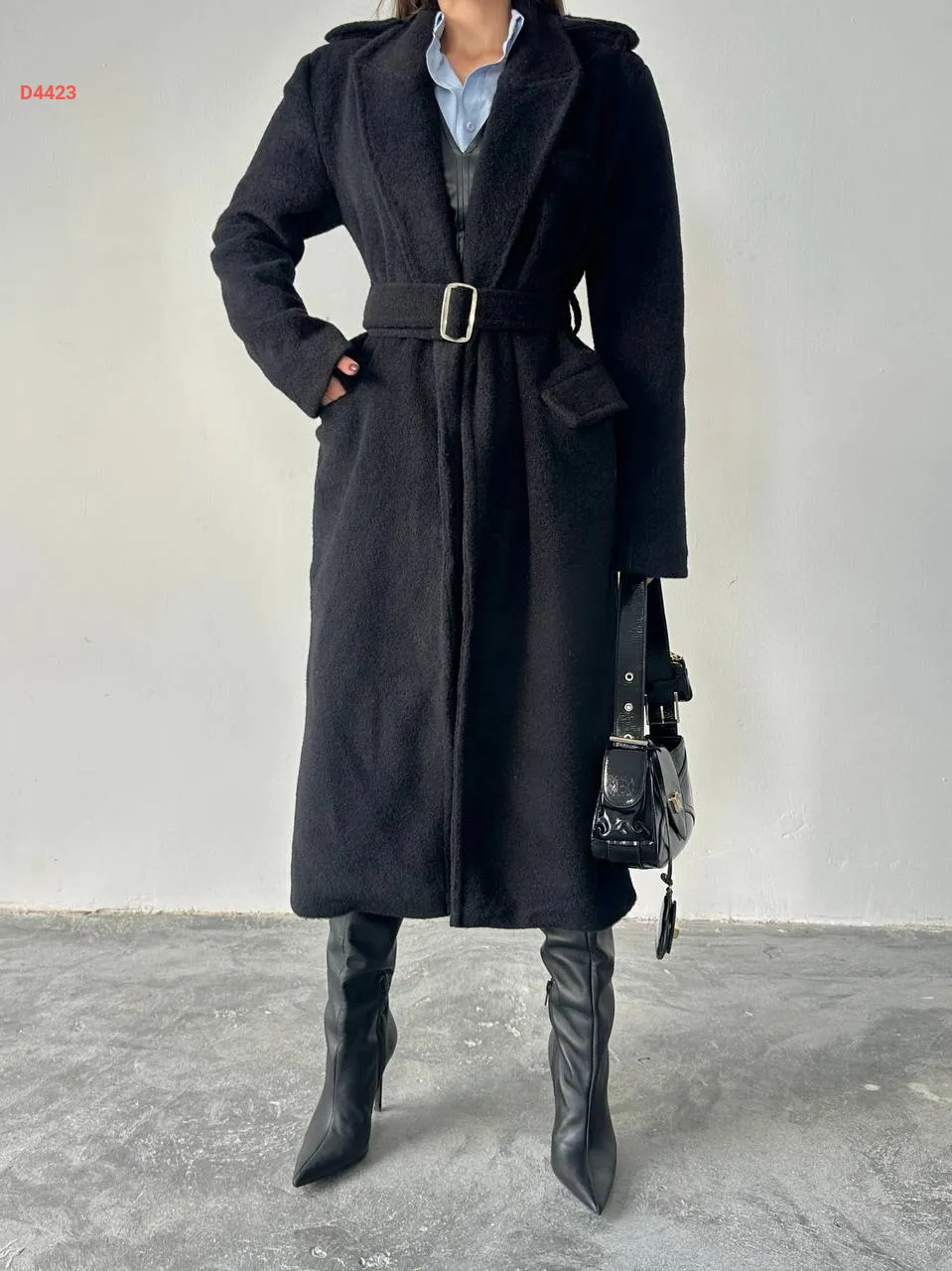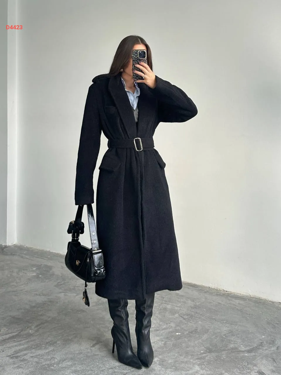 معطف شتوي طويل مع حزام