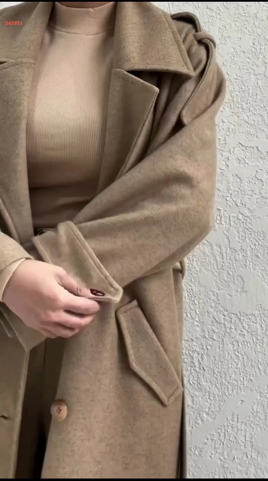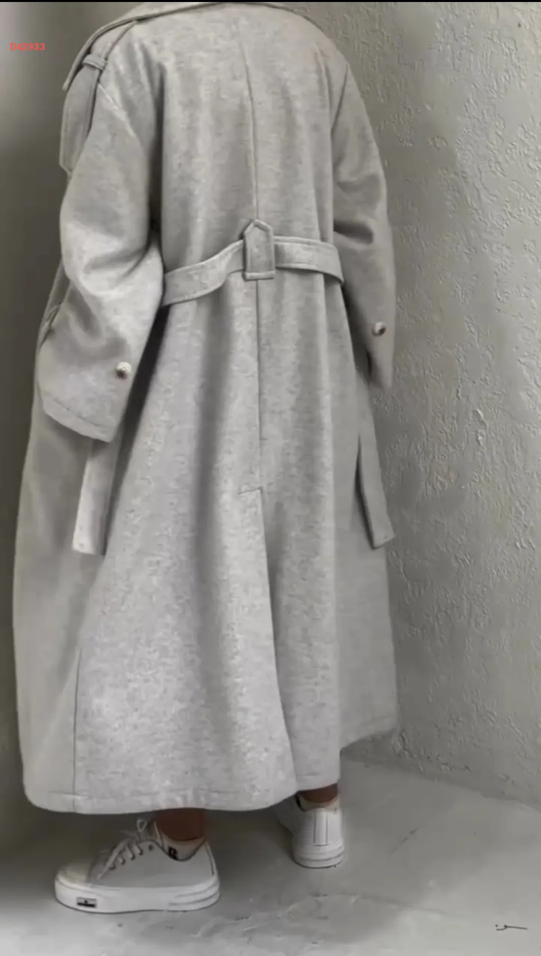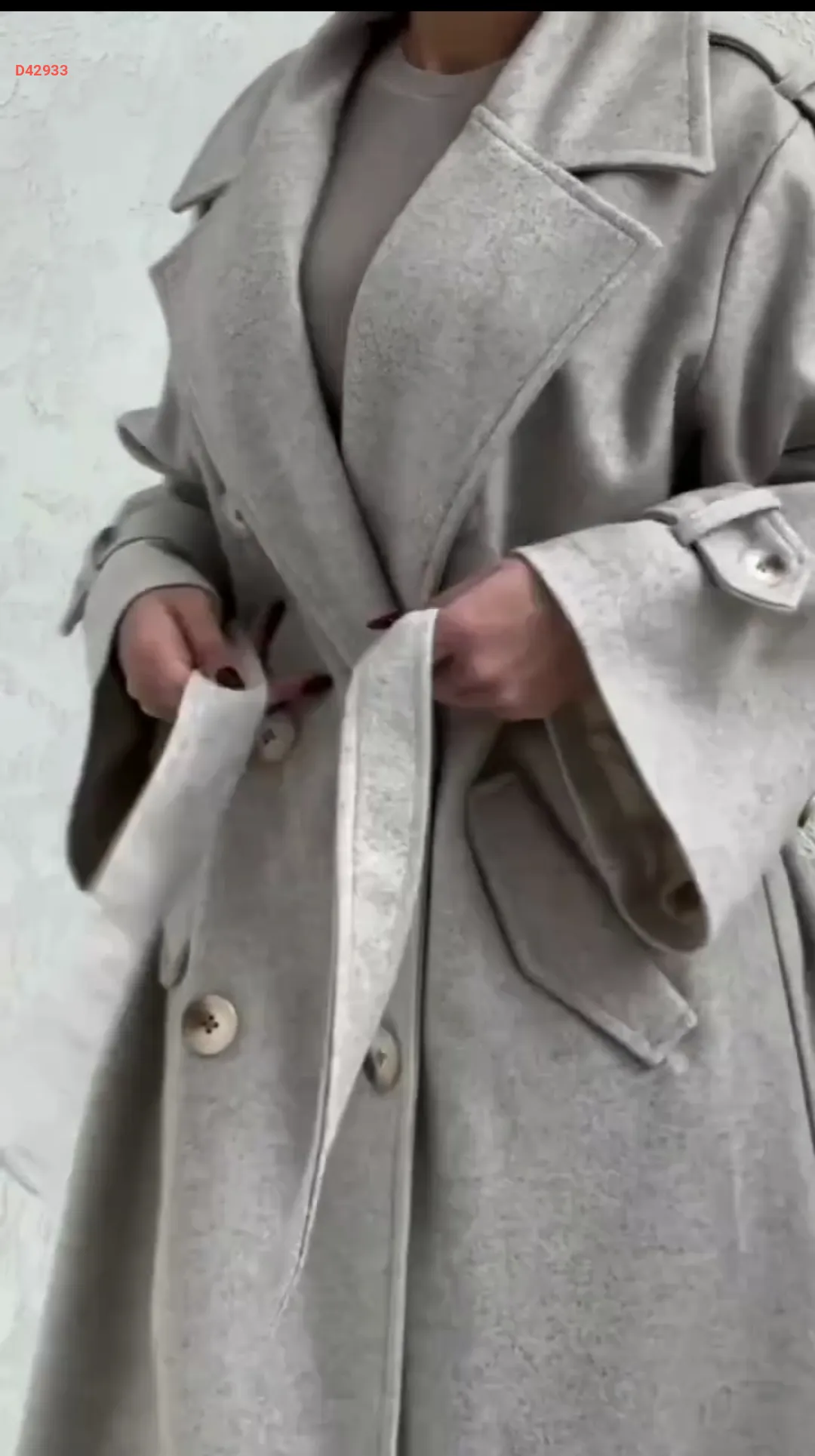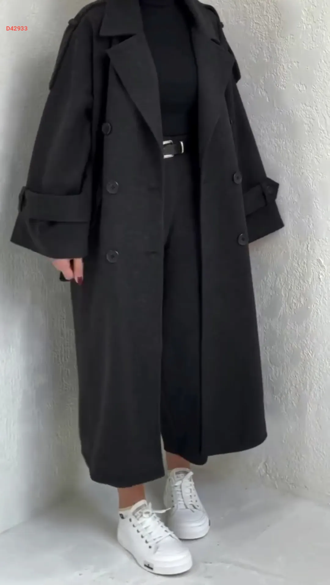 طقم قطعتين مانطو جوخ طويل مع بنطال ، بأزرار مزدوجة، مع حزام