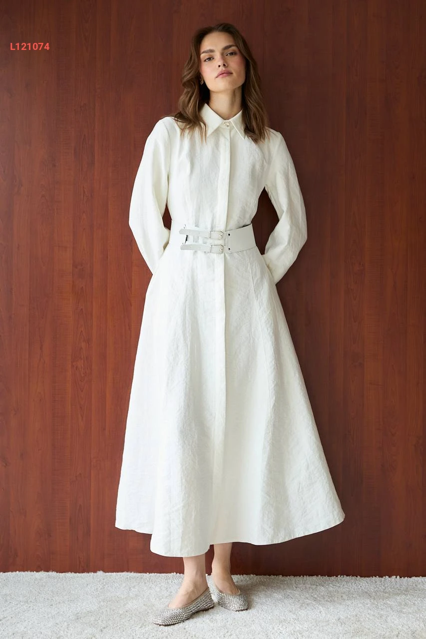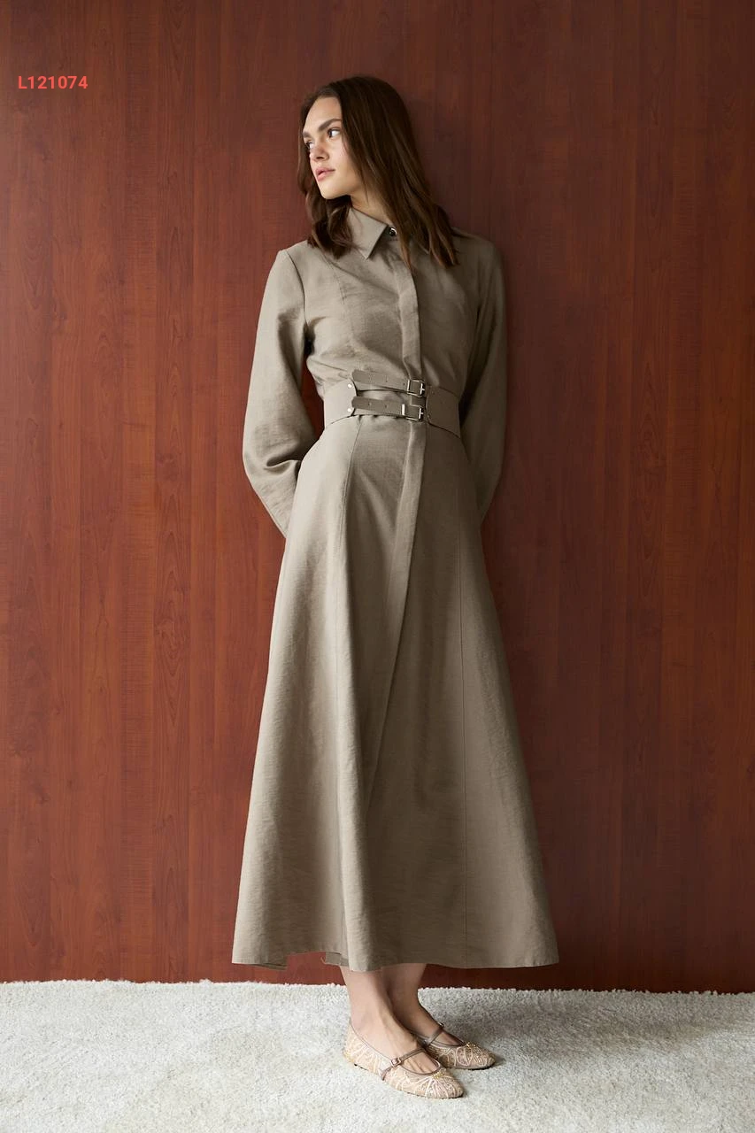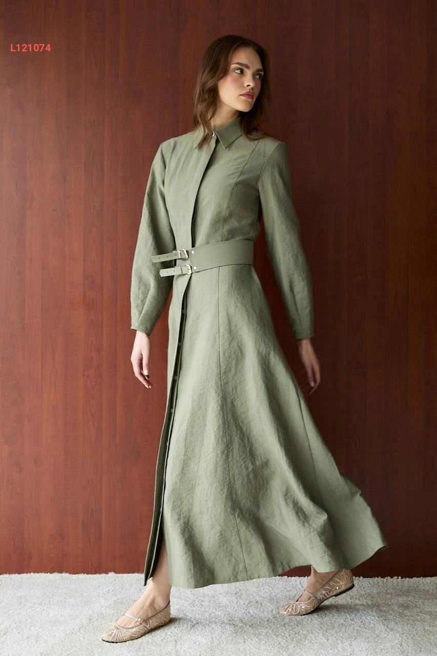 فستان طويل زارا كوبرا بأزرار وحزام