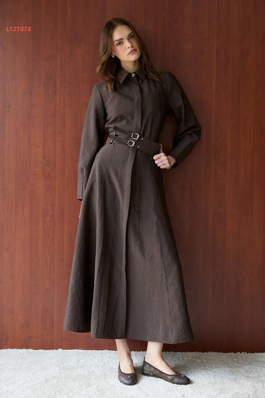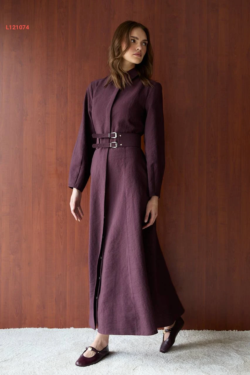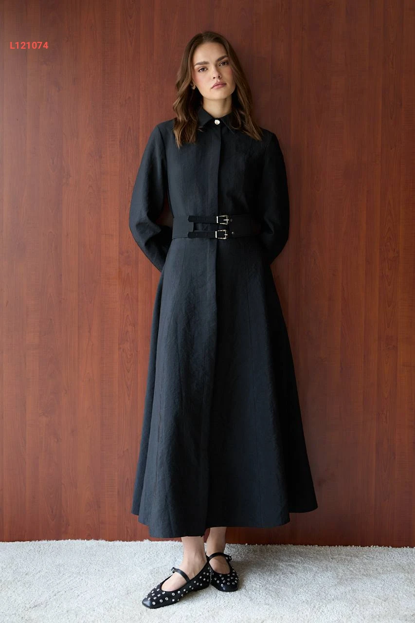 فستان طويل زارا كوبرا بأزرار وحزام