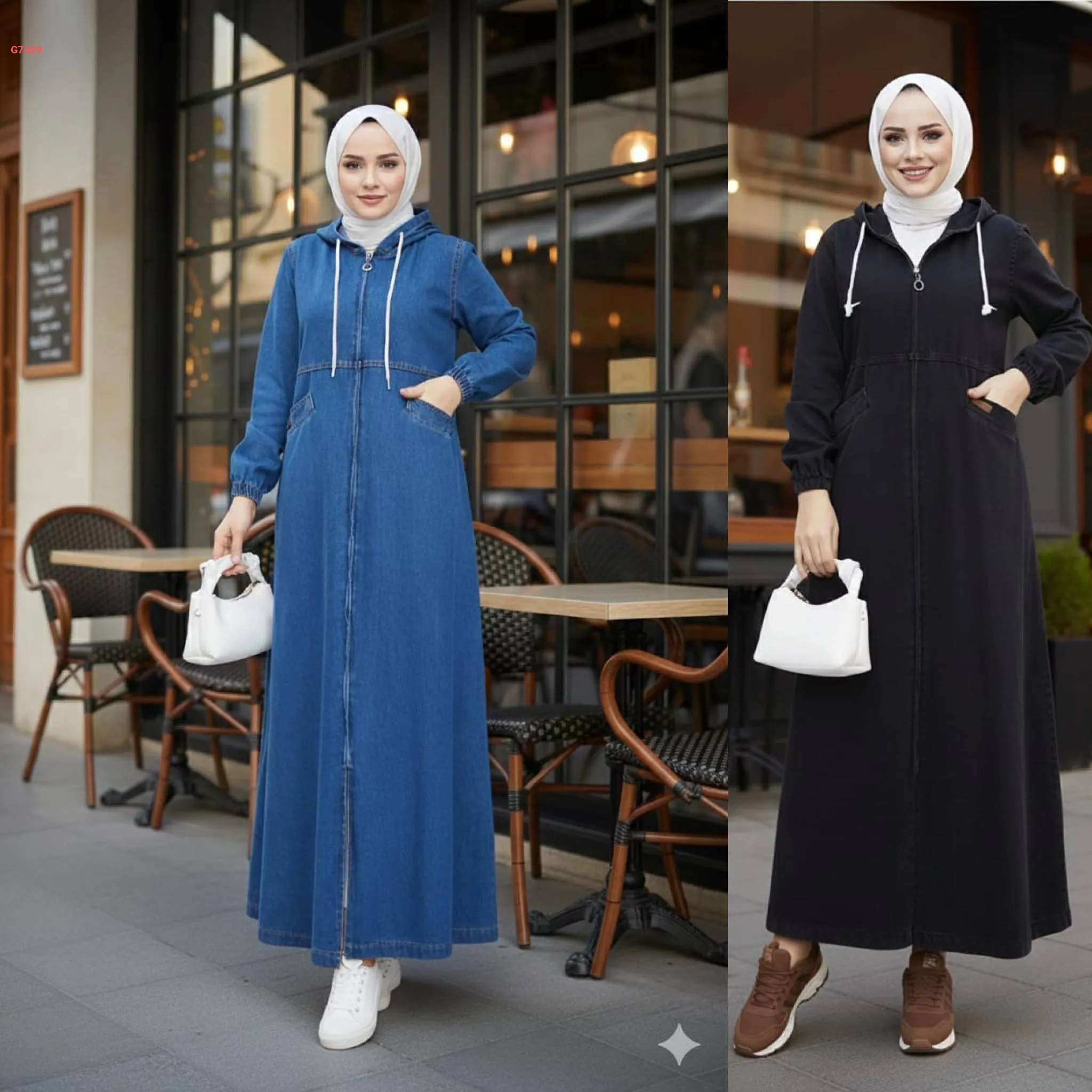 جاكيت جينز طويل بسحاب مع جيب بغطاء رأس
