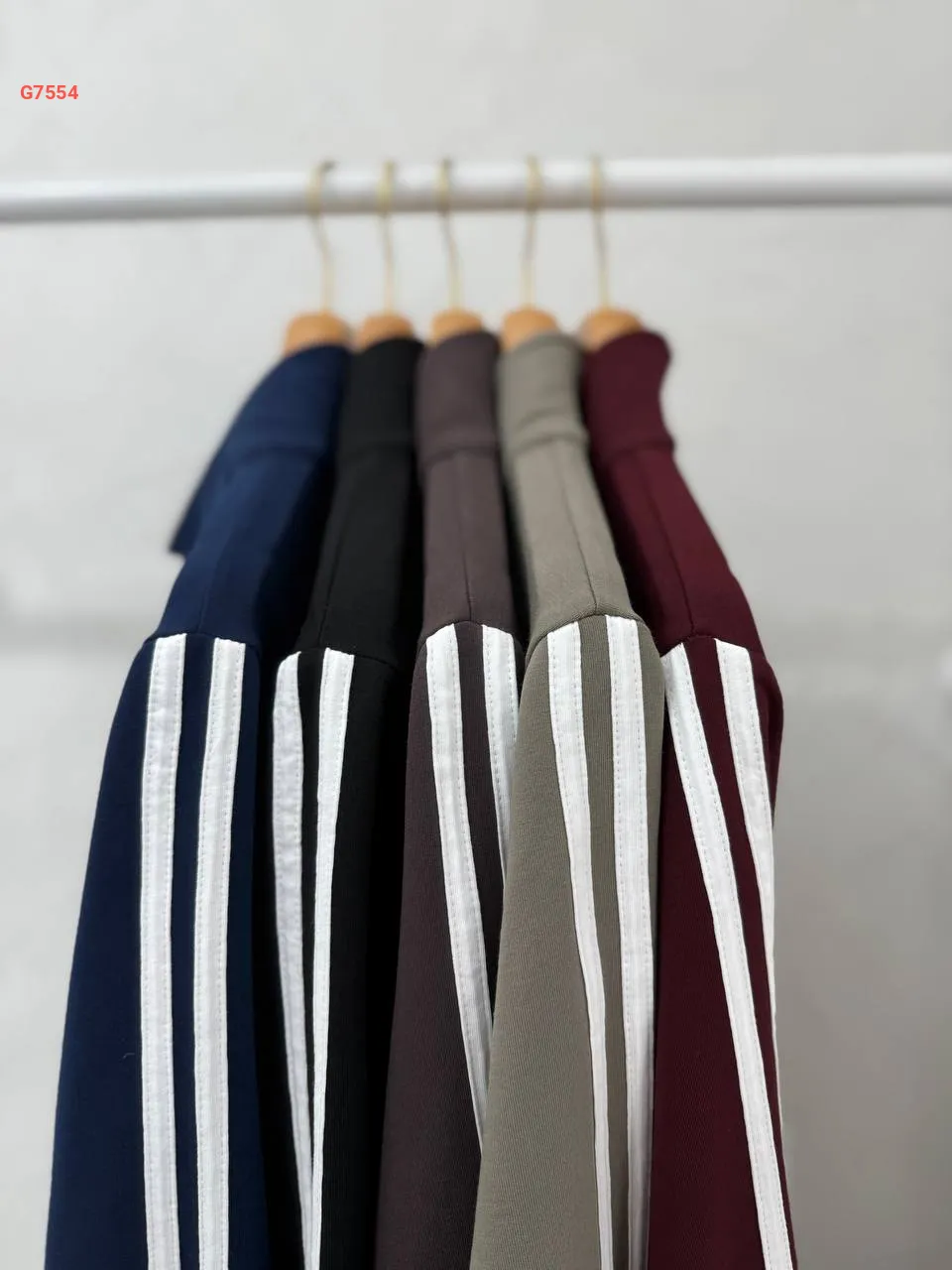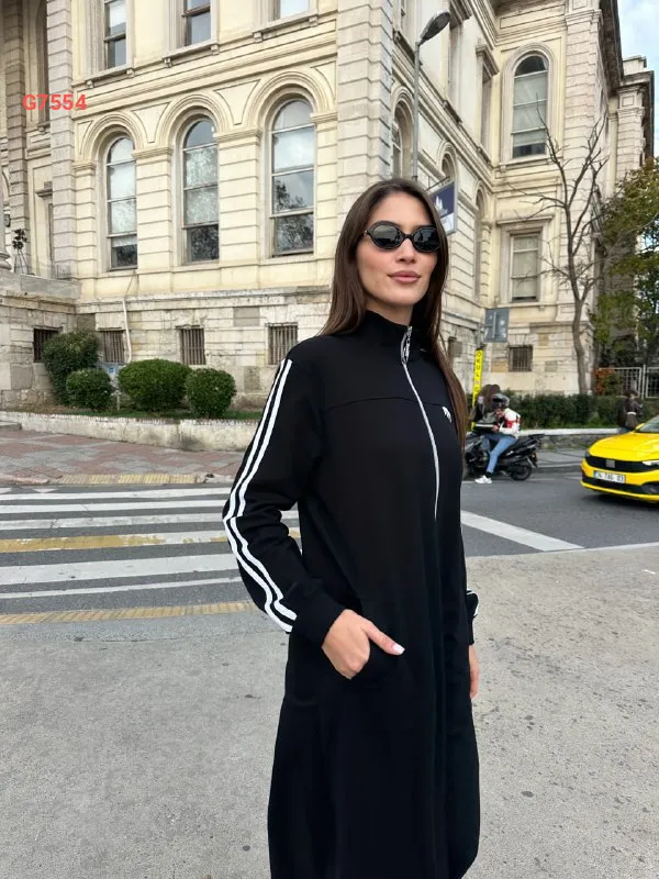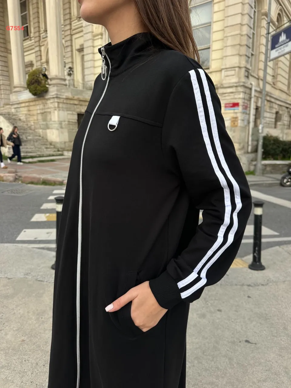 جاكيت رياضي طويل بسحاب ، مخطط من الأكمام
